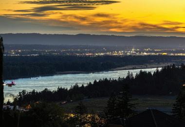 Situated on a premium lot atop the prestigious Grand Ridge Development, this home offers a sweeping 180-degree panorama; breathtaking views of the river and cityscape, from Troutdale to PDX. The grand kitchen is a chef’s dream with a sit-down granite island that comfortably seats eight—ideal for gatherings and entertaining. The kitchen features top-of-the-line stainless steel appliances, Sub Zero, Dacor, and Bosch. The elegance of Brazilian cherry hardwood floors flows seamlessly throughout the home, enhanced by custom-built cabinetry that adds a refined touch to every room. The expansive, flat, fenced backyard is a true oasis—an ideal space for children and pets to play and explore. This residence is more than just a home—it’s a sanctuary for those who appreciate luxury. Two owner suites, each with private balconies, offer breathtaking southwest-facing river views. Upon entering the home through the north-facing entrance, you are greeted by an immaculate space filled with luxurious details.