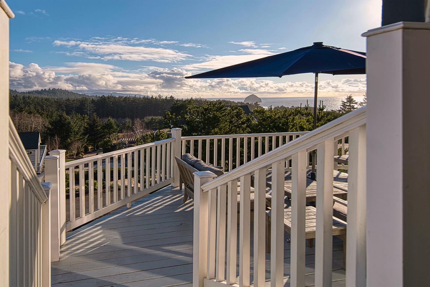 Elevated above the coastline in the pristine, gated community of Nantucket Shores, this stunning three-story, four-level custom home seamlessly blends craftsmanship and nature. An architectural masterpiece wrapped in cedar shake siding, it features masterfully placed windows, doors, and skylights that frame breathtaking ocean and forest views. Perched high above the coastline, this home offers a commanding vantage point, where views of the forest and ocean stretch from Cape Lookout to Cascade Head, encapsulating the beauty of Cape Kiwanda. Designed with exquisite attention to detail, it features graceful arches throughout, accentuating its timeless charm. Large white oak beams infuse warmth and character, complementing the custom woodwork and elegant crown molding. Thoughtfully designed staircases connect each level, while five spacious decks invite you to immerse yourself in the beauty of the Pacific Northwest’s iconic Oregon Coast—from soft pink-hued sunrises and golden amber sunsets to luminous, starlit coastal nights. More than a home, The Cottage House is a celebration of beauty, style, and tranquility—a sanctuary where ocean breezes and timeless elegance create an unmatched coastal retreat.