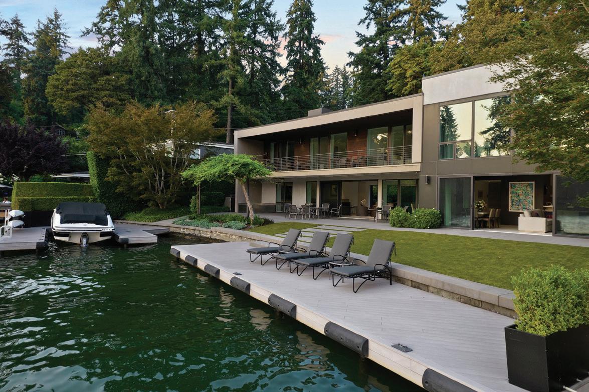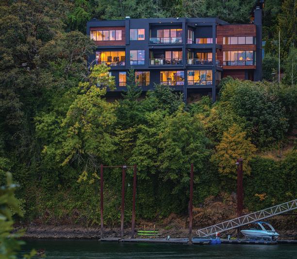 Perched on the banks of the Willamette, this stunning riverfront contemporary home is one of few Dunthorpe residences that boast a private dock.