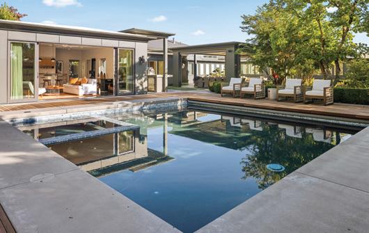 • Resort-like outdoor space, including a covered poolside living area, outdoor kitchen, hot tub, and turf yard for easy maintenance.