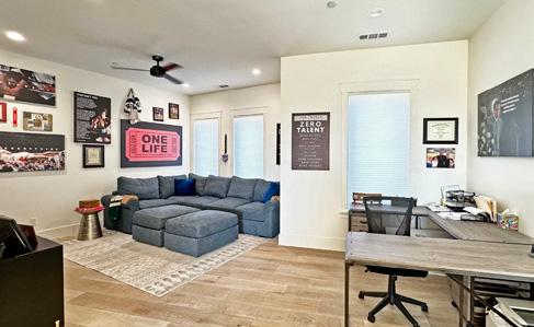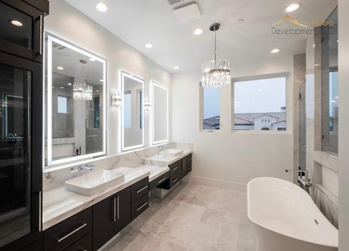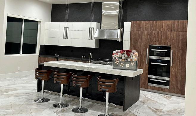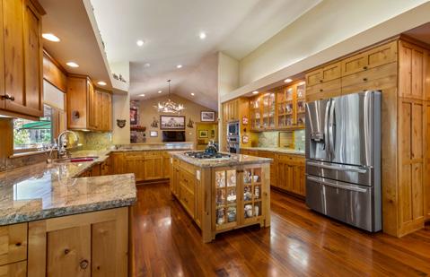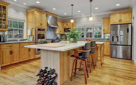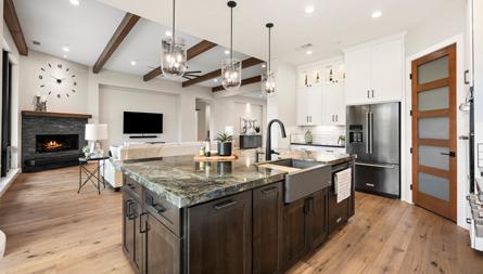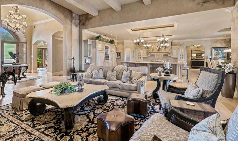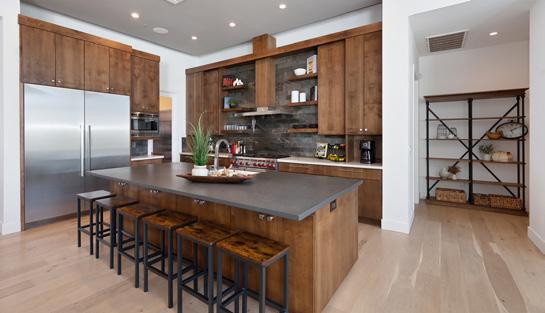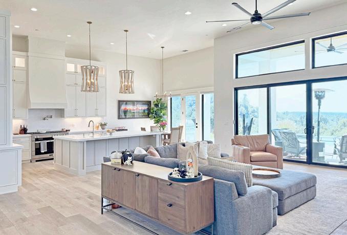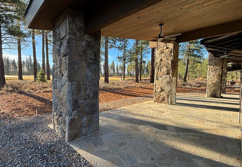 FROM NCO DEVELOPMENT in one of Truckee’s most coveted neighborhoods, this new home will be wrapping up in mid-December! Located on a level and sunny lot, this rare, onestory home backs up to the 14th hole of the Gray’s Crossing golf course. With just over 3,500 sq ft of living space and over 500 sq ft of covered patio spaces, this new construction features a grand entryway, 4 ensuite bedrooms, a powder bath near the openconcept great room, a laundry room, theatre and 3-car garage. The chef’s kitchen is wrapped in walnut, featuring a large, waterfall island and Thermador appliances. The bathrooms are encased in limestone and marble, while the great room fireplace is clad in local granite, coordinating with the exterior stone columns and barrel-roof entry. Come see the craftsmanship and thoughtful design for yourself!