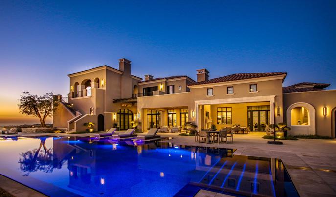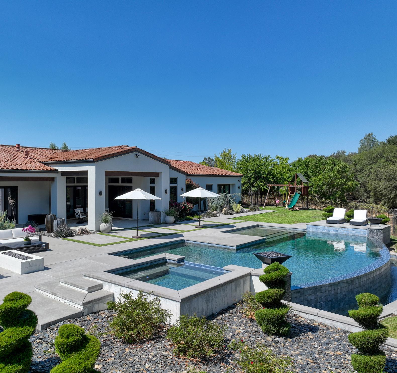 1694 CAMINO VERDERA, LINCOLN • $3,499,000 | Stunning custom-built luxury home in Catta Verdera, fully furnished! Singlestory with an open floor plan that seamlessly connects to the outdoor living spaces. Step outside to your private oasis, where a basketball court and extravagant pool and spa await. Outdoor kitchen features a gas grill, Blackstone grill, ice maker, refrigerator, and multiple TVs for ultimate outdoor experience.