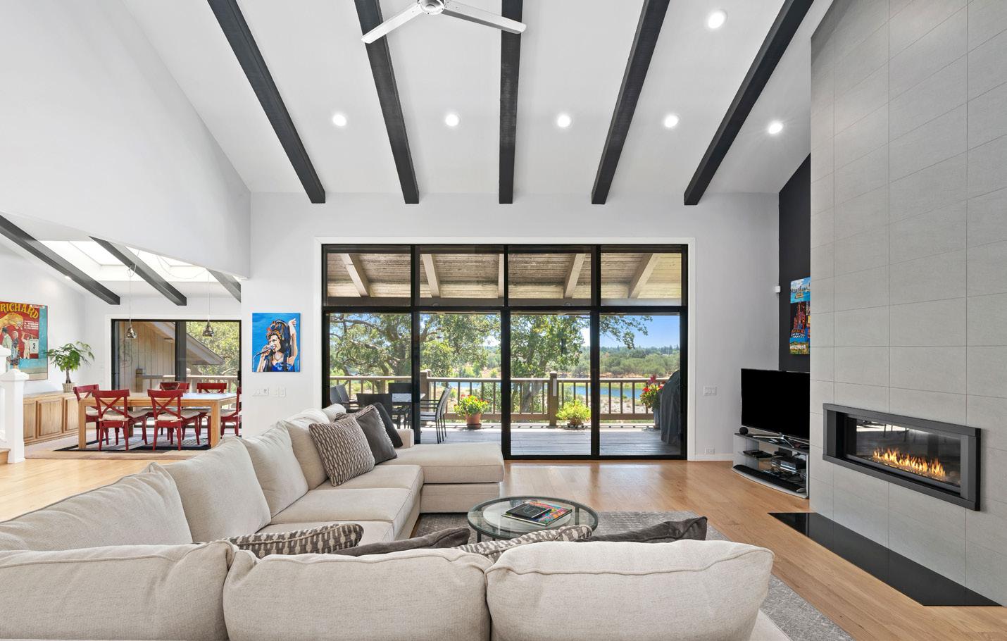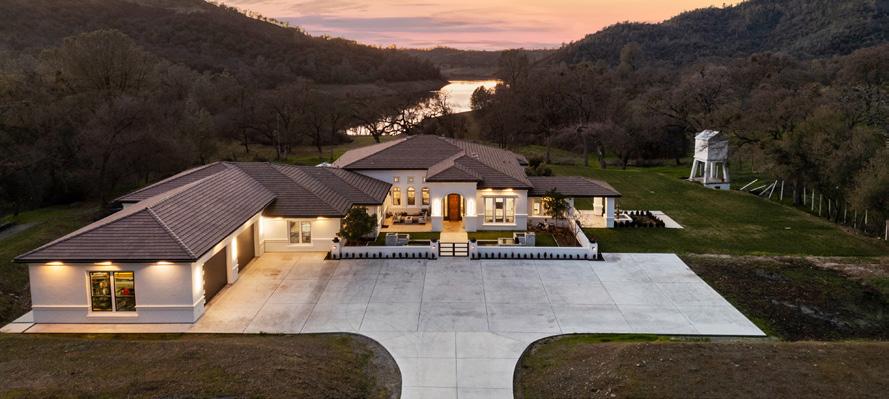 WATERFRONT LUXURY RETREAT Single Story Folsom Lake waterfront estate on a 3-acre parcel near New York Creek and trails. Gated courtyard with koi pond, lush lawn, and historic water tower. Over 8,000 sq ft under roof, fully renovated with high-end finishes. Open floor plan, 4 beds, office, dream kitchen, spa-like primary suite, and 20-car garage. A rare offering.