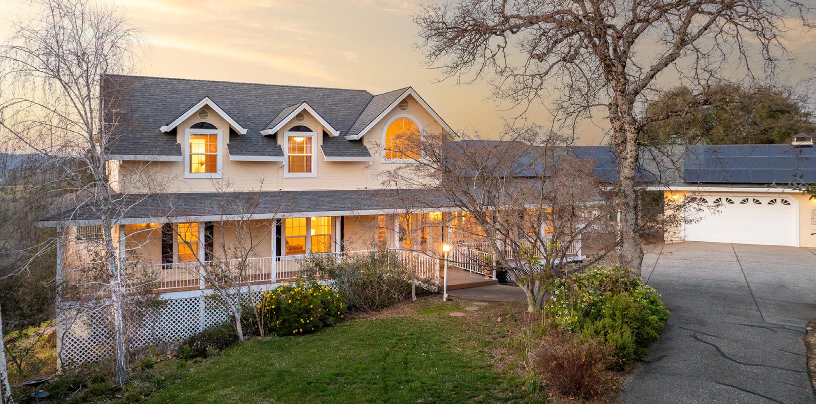 20254 WILDWOOD WEST | PENN VALLEY • Exquisite 4800 sq. ft 4 bed/4bath home, offering a blend of elegance, natural beauty & cutting-edge amenities. 60-panel solar system, 4 Tesla Powerwalls and Tesla charger. High-speed Fiber Optic Internet wired throughout the home including Smart Home technology. Sweeping views of the Sierra Mountains, Sutter Buttes, the Coastal Range and Lake Wildwood. The kitchen, with granite countertops, upgraded appliances & center island flows into a cozy family room. Formal living and dining rooms, large office. Spacious bonus room and a guest area downstairs. The main level primary suite offers a peaceful retreat with direct deck access. Oversized 3-car garage, horse stalls, round pen, fenced pastures and cleared path to Deer Creek. OFFERED AT $1,297,000