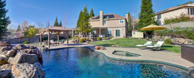 8281 E HIDDEN LAKES DRIVE, GRANITE BAY • $1,399,000 | Stunning Granite Bay home in Hidden Lake Estates! Five bedrooms and three and half baths with a spacious loft! Owned solar! Flooded with natural light and flowing floor plan! Backyard is an entertainers delight! Pool and spa! Oversized outdoor kitchen and large fire pit! Sport court! Home backs up to miles of trails and Folsom Lake!