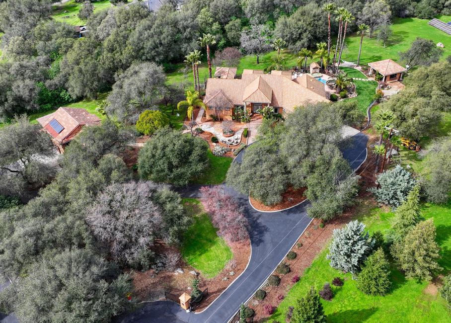 5687 RIDGE PARK DRIVE, LOOMIS | $9,850,000 | Welcome to Casa Paloma, an exceptionally private gated grand Mediterranean estate resting on 5± acres with expansive views of the Sierra Foothills offering 13,350± Sq. Ft. under roof with 7 bedrooms, 9 bathrooms, an entertainment suite with golf simulator, lanai with invisible auto shades and detached guest quarters.