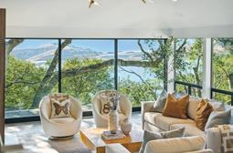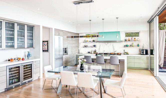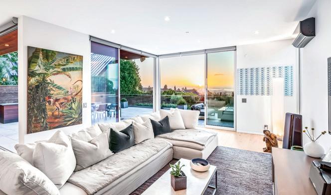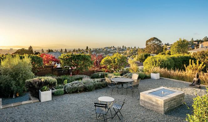 Whoever said “the best views of San Francisco are from Oakland” could have had this home in mind. Upstairs and downstairs, inside and out, the home looks across the Bay at the City, Golden Gate Bridge, Bay Bridge, Richmond Bridge, Marin County, and Mount Tamalpais. The modern-design home was built to capitalize on the views. Downstairs, the kitchen, dining area, and living room all look out through 10-foot floor-to-ceiling windows and sliders that spill onto a generous deck to the stunning views to the west. The spacious deck floats on a state-of-the-art grid with no grouting (making it exceptionally easy to clean) and accommodates a 10-seat dining set, built-in grill, and sitting area with a fire pit. The deck is an entertainment hub (with an elite all-weather speaker system) for gatherings large and small. The home is the brainchild of noted architect Eric Manou, a modernist, who treats a vacant lot as “my canvas” upon which to paint. He is known for blending textures and ergonomics to create a feeling of light and air. This home is a perfect example.