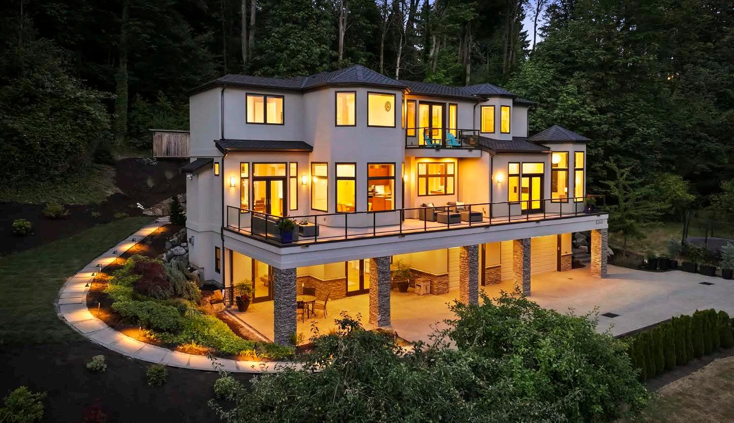 Welcome to Bella Manor — a breathtaking waterfront estate offering 110 feet of pristine shoreline and nestled on a lush, oneacre sanctuary bursting with a bounty of fruit trees and vibrant gardens, from apples and blueberries to vegetables and more. Experience sweeping 270-degree views of the lake from nearly every room in the home, with multiple outdoor and indoor spaces designed for unforgettable entertaining. This exquisite residence is adorned with high-end finishes, rich hardwood flooring, custom cabinetry, and striking river rock fireplaces that blend natural elegance with modern luxury. Bella Manor is the ultimate expression of refined lakefront living.