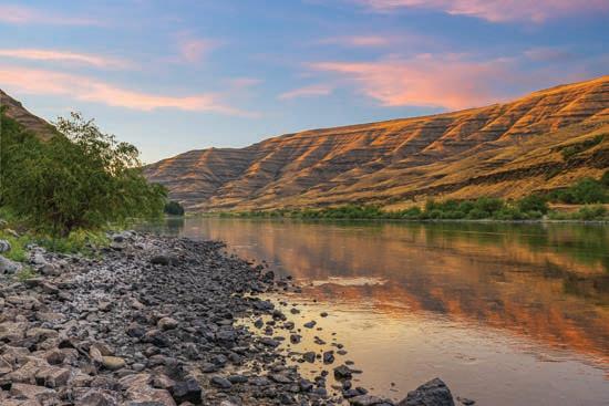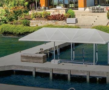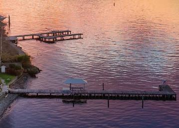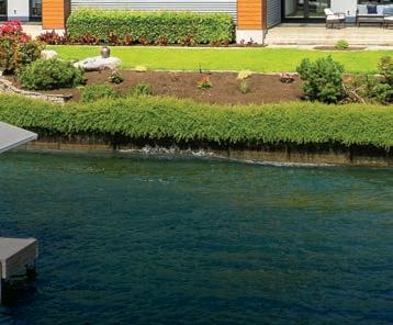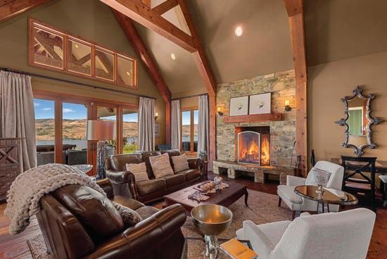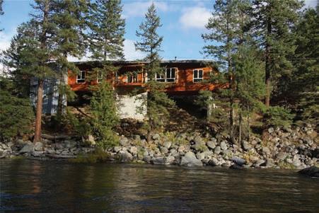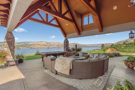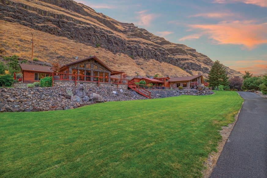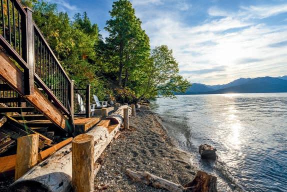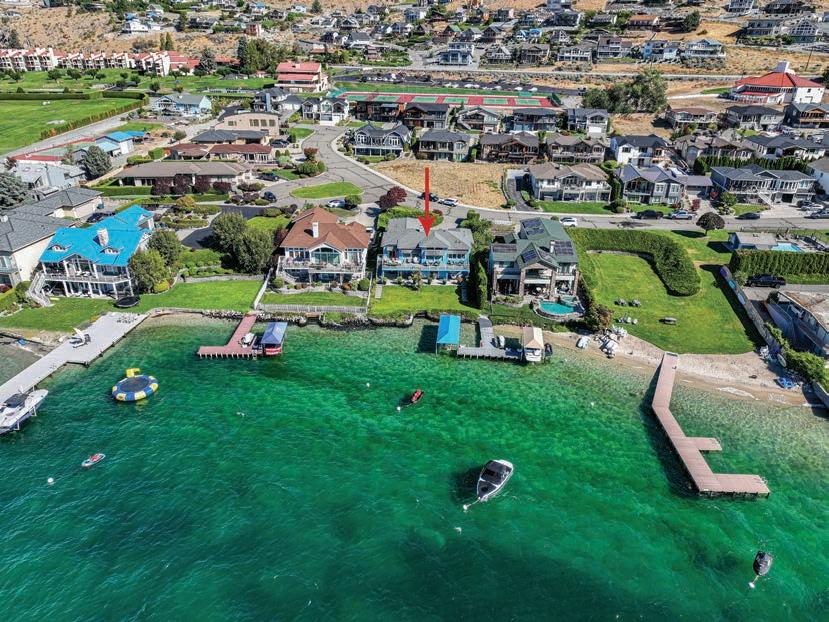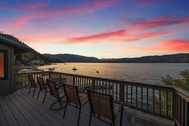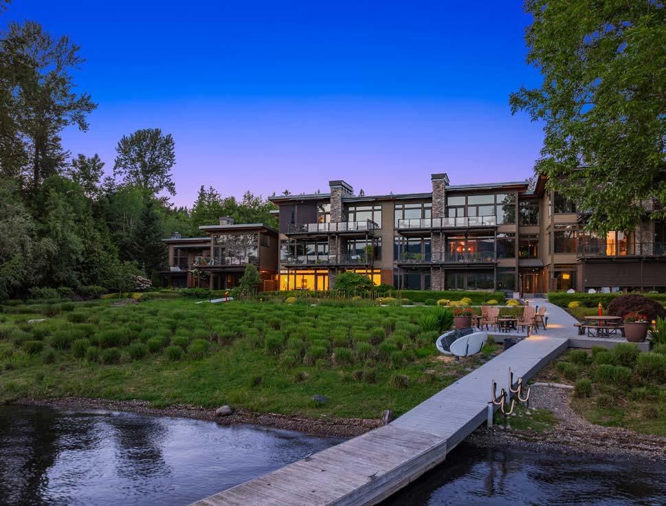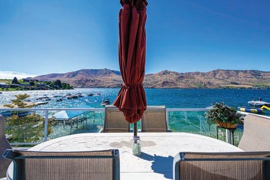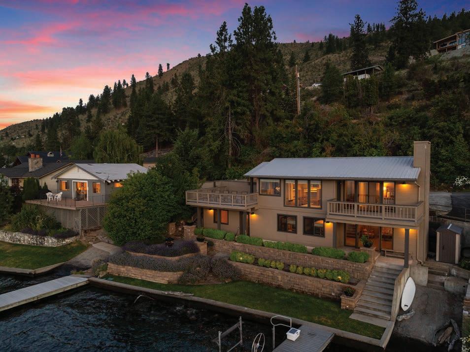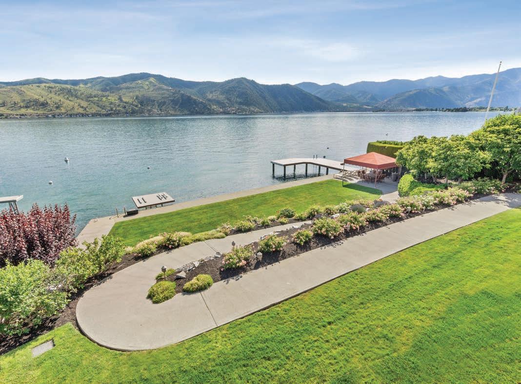 The Waterfront Estate Retreat at Lake Chelan o ers 140’ of prime low-bank bulkhead frontage, two private docks, a boat lift, and a jetski lift.