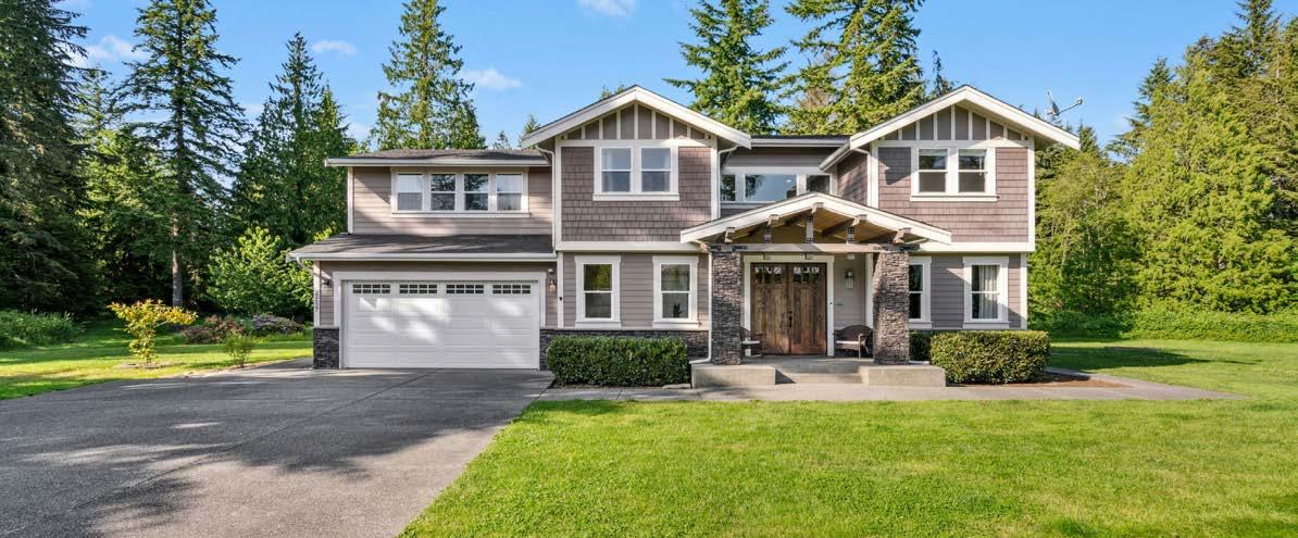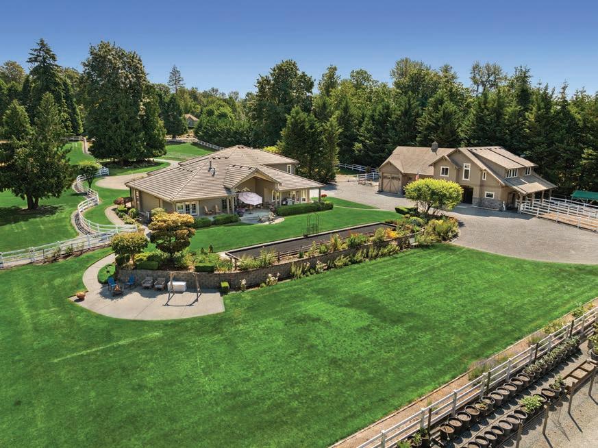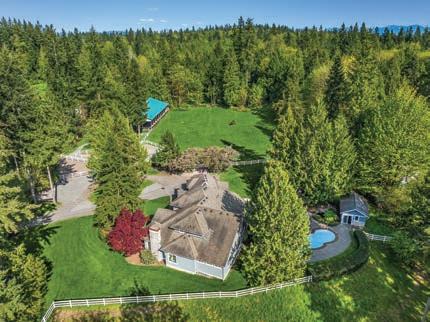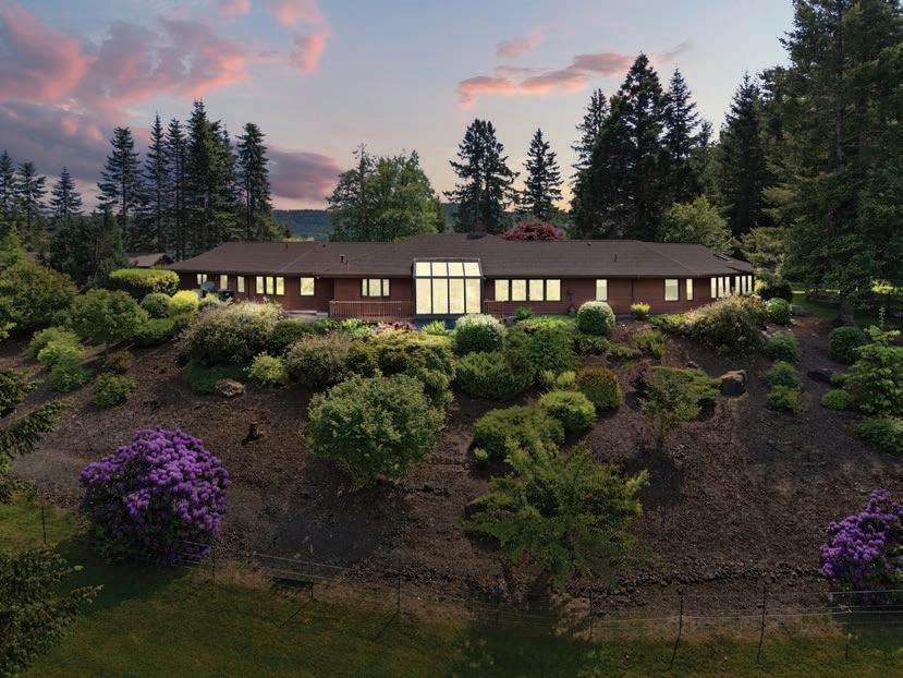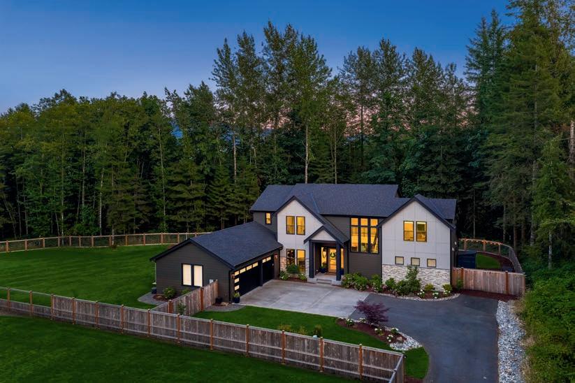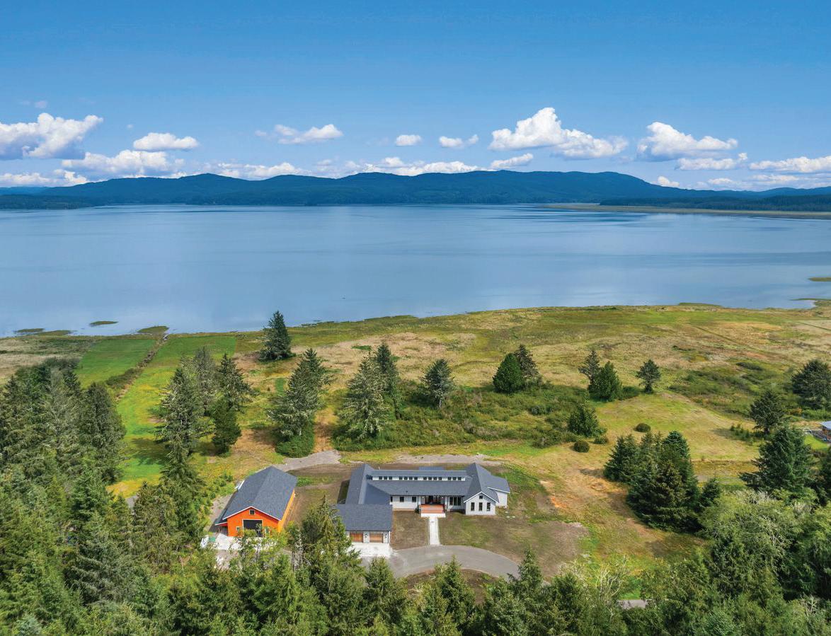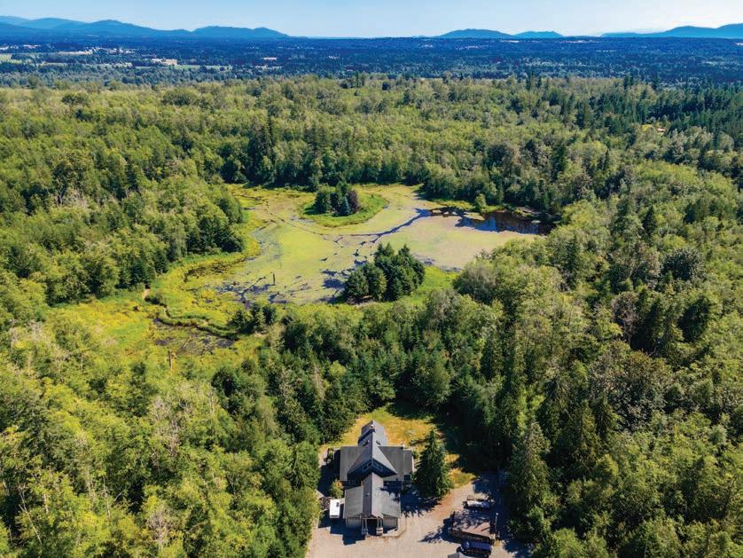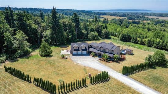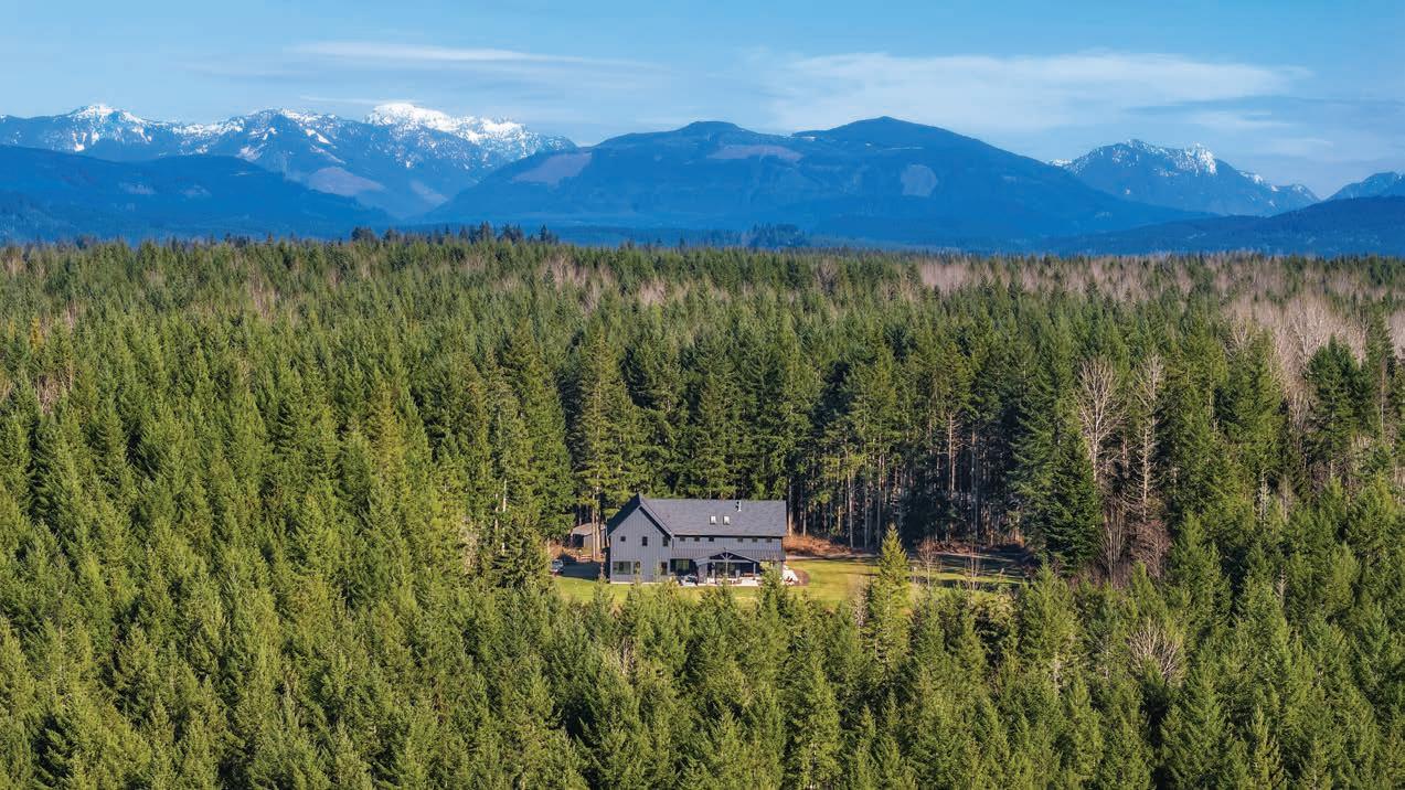 O ered at $2,250,000 | MLS# 2396492 | 9474 Freedom Place, Blaine, WA 98230 | Secluded custom-built home on just shy of 30 acres featuring an 8-acre lake, headwaters to Haynie Creek’s salmon, wildlife, and pure privacy. The property has groomed trails and roads for exploration. The home provides spacious living, with the primary suite on the entire upper floor, featuring a gas stove, 2 walk-in closets, and a private deck. The main floor has a living area and a rec room with a wet bar, while the lower level o ers a media room, workout area, and safe room. Additional amenities include a 2,280 sq. ft. heated shop with a half bath, a 550 sq. ft. greenhouse with auto louvers, a covered dog run, a large chicken coop, and a 30 KW generator with automatic transfer switches that ensure power reliability O ered with 70 acres for $3,000,000 | MLS# 2396492