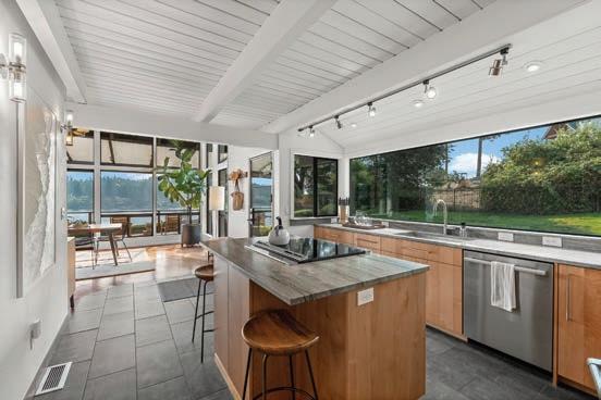 Island living meets striking NW contemporary design in this rare Raft Island waterfront retreat. Enjoy 100’ of prime south-facing, low-bank waterfront with all-day sun, a shared dock, and a fully permitted 696 SF boathouse w/ kitchen, bath, and loft—nearly impossible to duplicate. The 2,817 SF main home showcases vaulted ceilings and expansive windows that fill the interior with natural light and capture stunning views from every room. Enjoy the professionally landscaped grounds with multiple outdoor living areas, including view decks, a lush lawn, and thoughtfully designed garden pathways. Cross the bridge and experience this classic NW waterfront retreat and the relaxed pace of island life. Raft Island offers a walkable, community-oriented lifestyle with private parks, tennis courts, and a resident-only boat launch