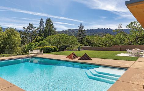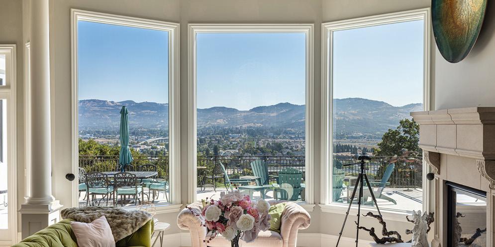 Dreaming of breathtaking Napa Valley views upon waking every morning? Live that unique life with this striking, three-sided floor-toceiling window wall in one of the two primary bedroom suites of this stunning modern home. Approx. 2000 SF of outdoor living includes an inviting, sparkling swimming pool suspended over the valley, outdoor gas fire place, and two porcelain tile covered cantilevered decks with sweeping wine country vistas spanning Yountville to St. Helena to Calistoga and Howell Mountain above the fog line.