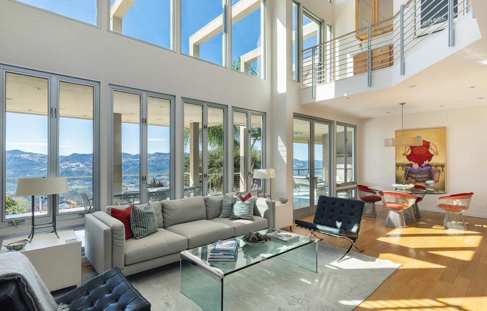 Sweeping views of the picturesque Napa Valley, Mt. George, and the winding Napa River to the San Pablo Bay. This spectacular home offers a glorious Wine Country lifestyle. Its soaring ceilings and expansive windows throughout the home draw in wonderful natural light and breathtaking views indoors, while the expansive veranda allows for relaxing or entertaining nestled within the heart of it all.