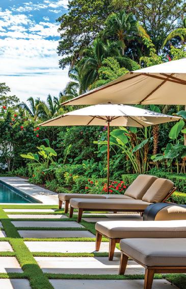 A beautiful, covered lanai surrounded by nature, a pond-less waterfall and salt water pool