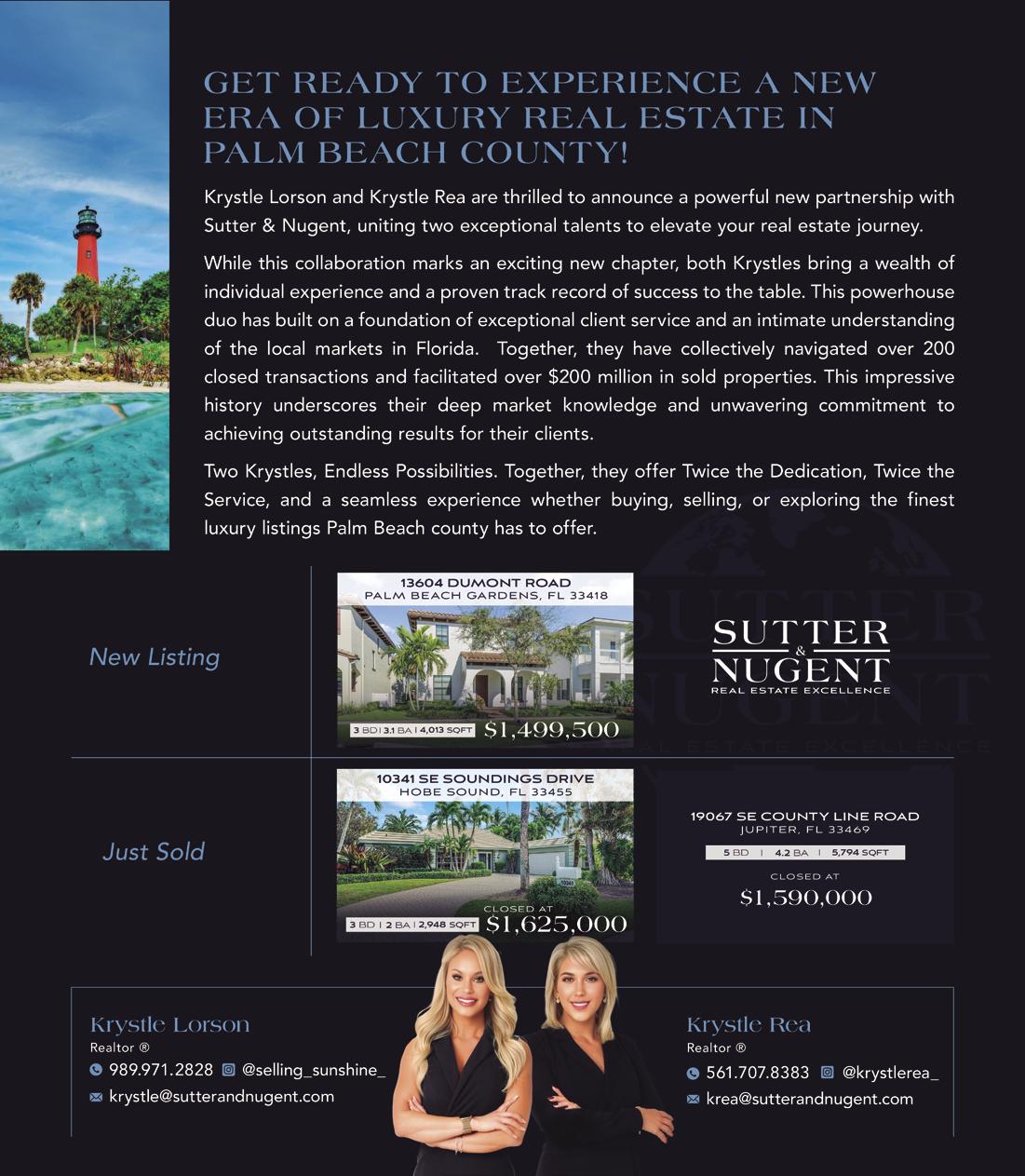 We’re all familiar with the saying ‘home is where the heart is’ - and you’ll find no argument from this self described home body. However... Where your home is located can seriously add to your happiness quotient. The Palm Beaches holds an allure that extends beyond swaying palm trees and sparkling huesof-blue ocean. It ’s a place where luxury and lifestyle intersect, creating a diverse, dynamic and aspirational “Shangri-la.”