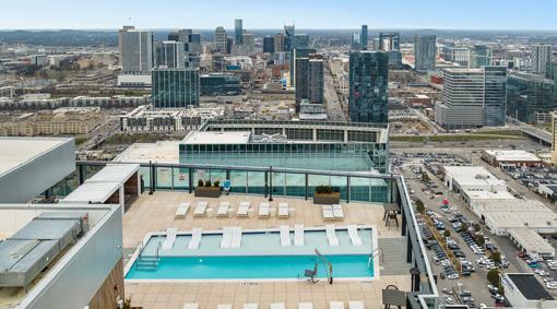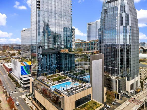 views of Nashville's skyline. This unit has 4 bedrooms, 4 full bathrooms, a wet bar on the top floor leading