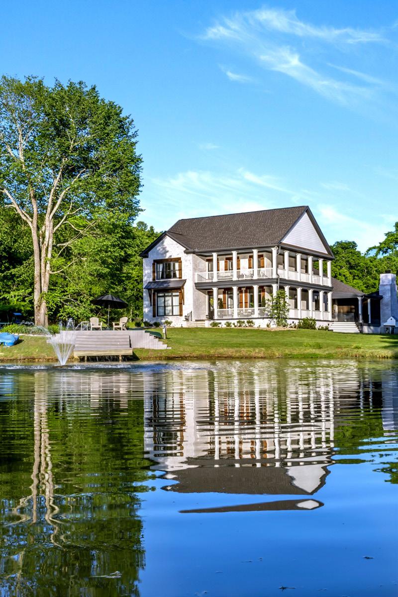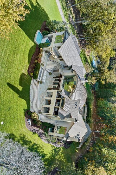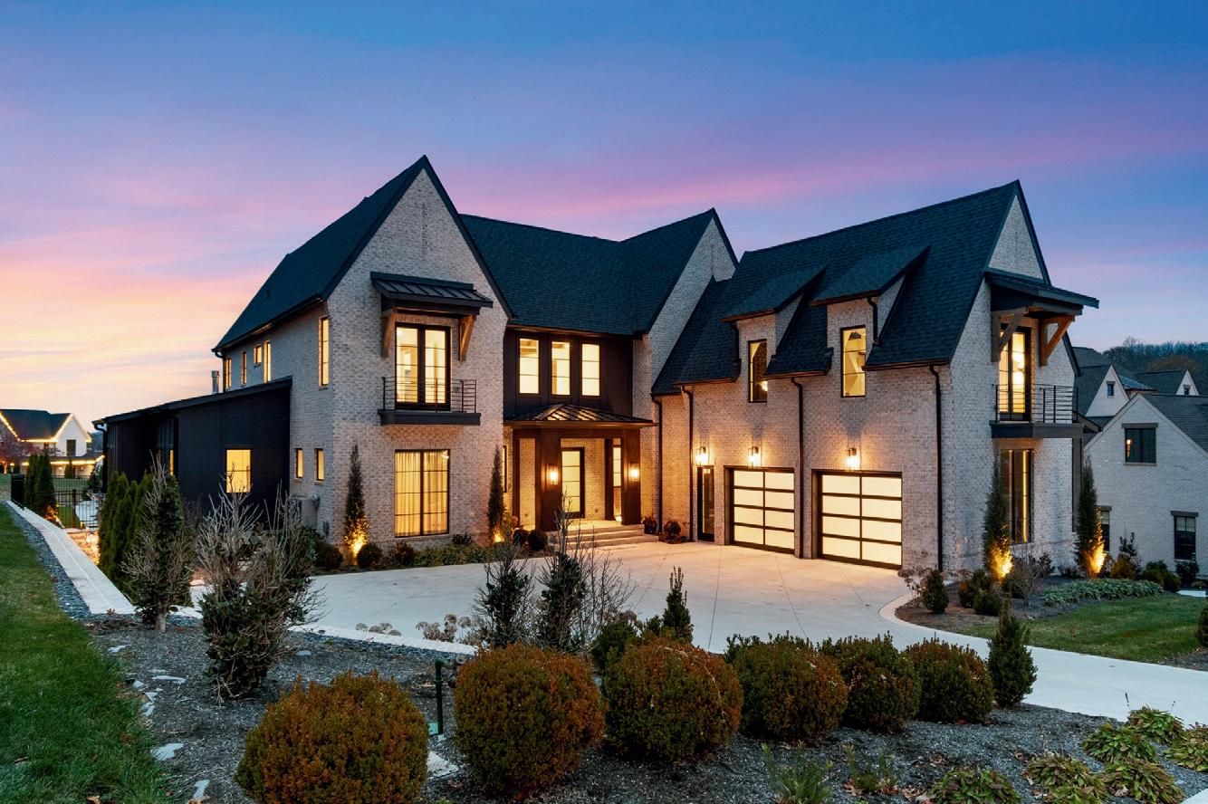 one of a kind modern estate overlooking a 1 acre stocked pond! In harmony with its state of the art amenities, the water powered geothermal system is responsible for heating and cooling this 10,450 sq uare foot home. As you enter through the private gates, a curved driveway ascends to the spacious rear motor gallery. U pon entering the Iron Lion doors, you’ll be greeted with elegance and stunning architectural details . Venetian plastered walls, soaring ceilings with arched wood beams, and 30ft floor to ceiling glass windows. Inspired by some of Nashville’s most sophisticated landmarks, this is the only residential property boasting "e nd grain" hard wood plank floors. A Michelin worthy kitchen provides endless entertainment space, opening to an outdoor heated deck and imported live edge floors. Conveniently located on the main floor is the owner(s)’ retreat connecting to an expansive fitness area. As you head down the suspended staircase, you will find three additional ensuite bedrooms, a ballroom, and a state of the art golf simulator; play any PGA course from the comf ort of your home!