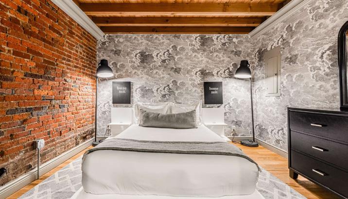 This two-story penthouse seamlessly blends history, privacy, and urban accessibility. It features three bedrooms, threeand-a-half bathrooms, and a dedicated office. The grand living area is enhanced by a chef’s kitchen, 14-foot ceilings, a custom fireplace, and Juliette balconies. The master suite offers soundproof windows and a spa-like bath. The second level unveils a private rooftop terrace—a 700-square-foot garden in the sky with panoramic views and a wet bar, perfectly marrying modern luxury with historic elegance.
