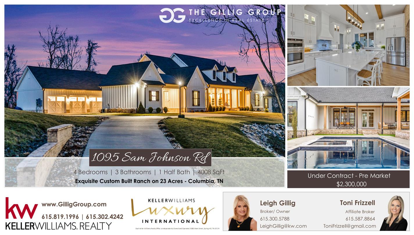 Gabrielle Dodson is a real estate licensee affi liated with Compass RE, a licensed real estate broker and abides by equal housing opportunity laws. All material presented herein is intended for informational purposes only. Information is compiled from sources deemed reliable but is subject to errors, omissions, changes in price, condition, sale, or withdrawal without notice. No statement is made as to the accuracy of any description. All measurements and square footages are approximate. This is not intended to solicit properties already listed. Nothing herein shall be construed as legal, accounting or other professional advice outside of the realm of real estate brokerage. To reach the Compass RE offi ce, call 615.475.5616. AVAILABLE SOLD SOLD SOLD