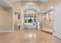 • Primary suite on main level with vaulted ceilings, soaking tub and oversized walk in closet