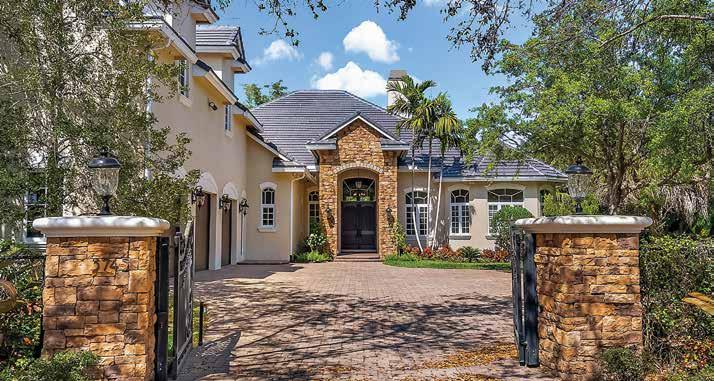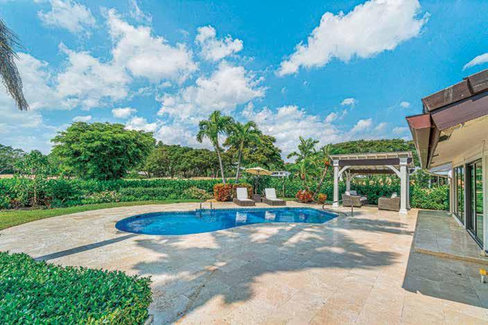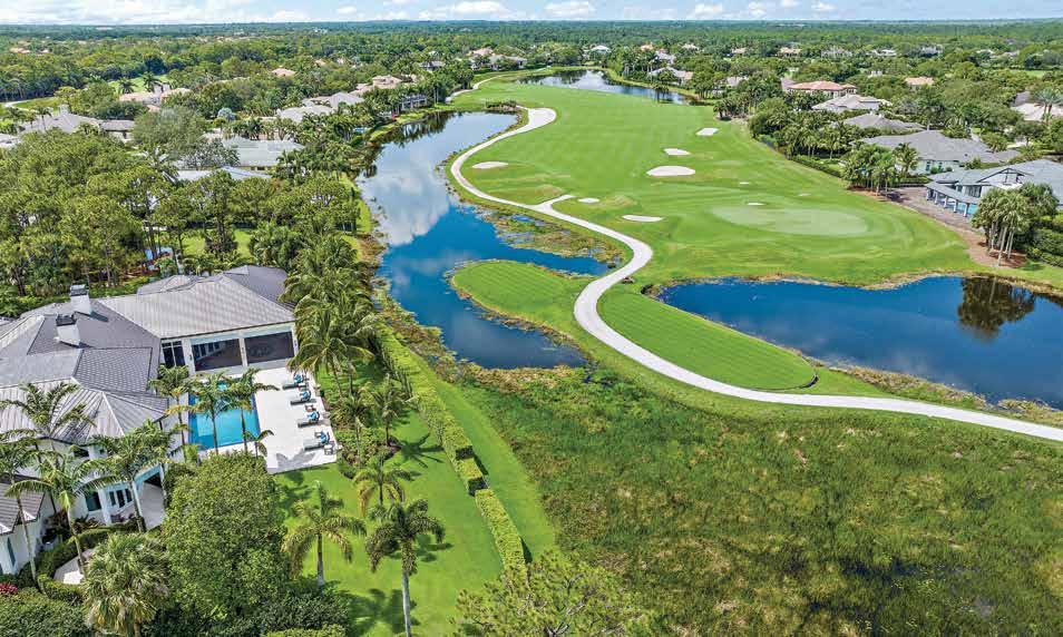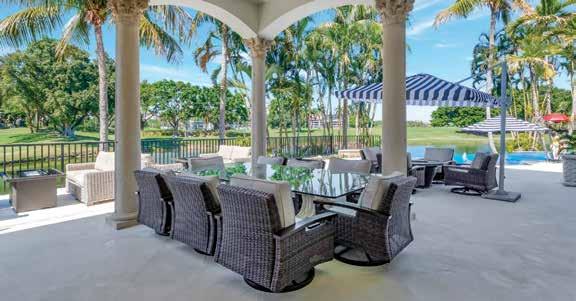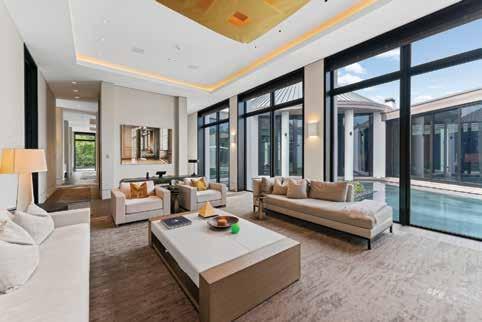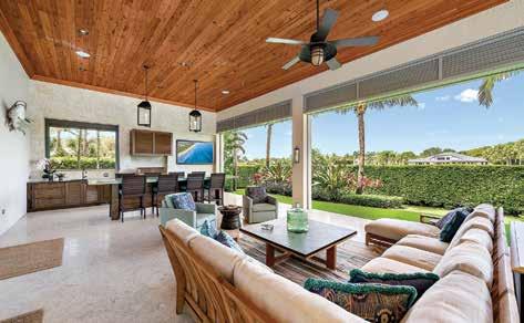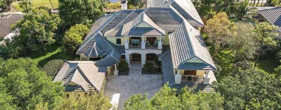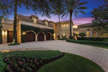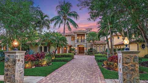 Located in the exclusive Jupiter Hills Club, an invitationonly and top-rated golf community in Tequesta, this home is an imposing estate with recently completed, ultra-luxury renovations by Onshore Construction. Sitting on an over half acre plot overlooking the third hole of the Par 5 Village Golf Course, this home features five bedrooms, six full bathrooms, two half-bathrooms, home office with wet bar, home gym and an updated gourmet chef’s kitchen with Wolf & Sub-Zero appliances and a butler’s pantry.
