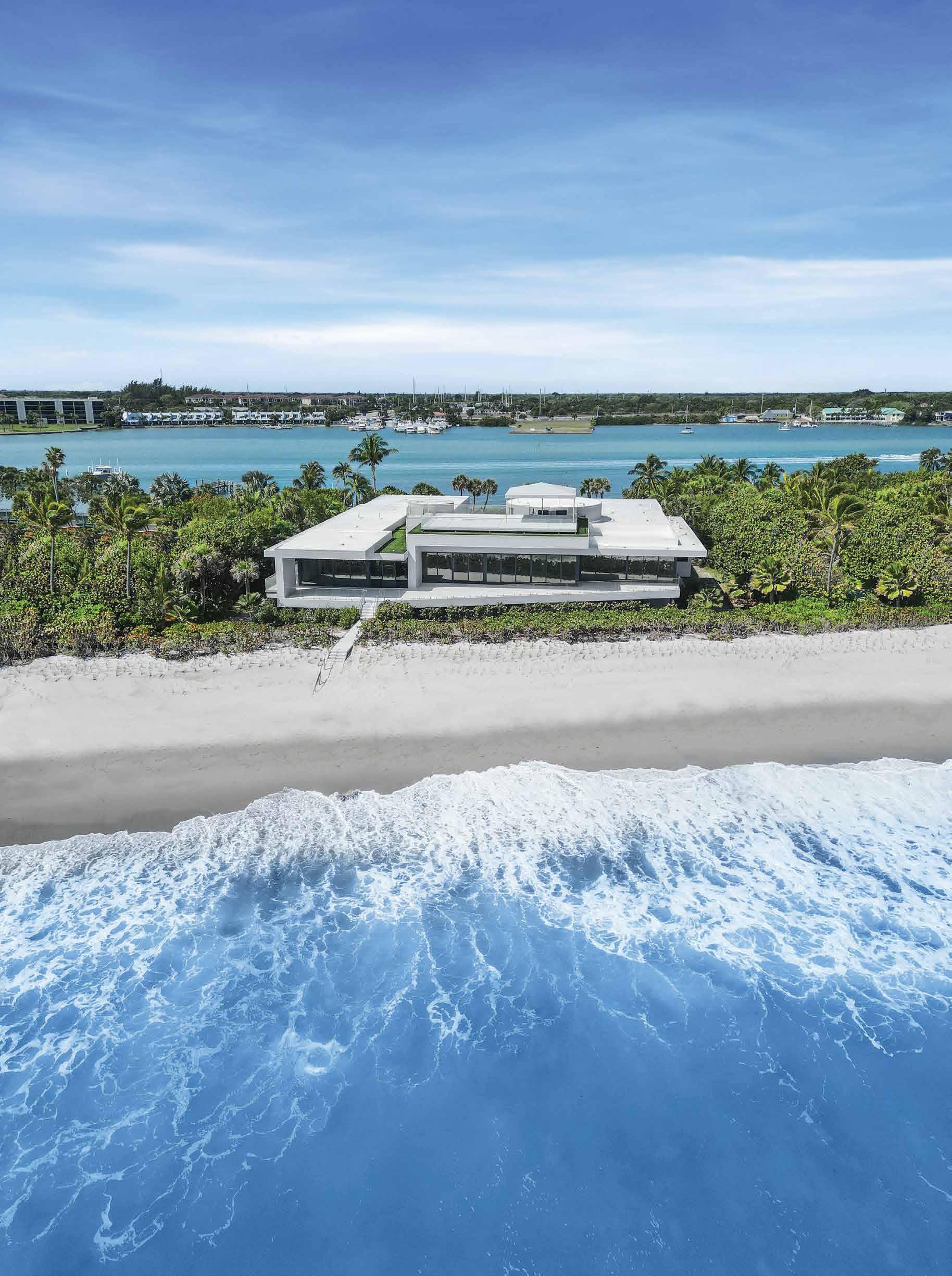 Ocean to intracoastal 20,000 total square foot ultra -modern mansion built in 2017 and newly renovated and reimagined with unparalleled panoramic ocean & Intracoastal views, and an unmatched luxury lifestyle on 2+ acres of the most sought -after property in the world! This truly rare and highly desirable direct ocean to Intracoastal, premier location on the south end of Jupiter Island is situated directly on 386 ft of turquoise blue water including 193 ft of direct oceanfront and 193 ft of Intracoastal. Designed by renowned modern architect, Scott Hughes and constructed in 2017, this masterpiece was recently reimagined and renovated with impeccable taste, style and workmanship. Built exceptionally well with all poured concrete and steel reinforced CBS tie-beam construction in the walls and between floors, on a structurally comprehensive system of cement pilings. The 2 acre property sits high and dry with the finished floor at 22 ft above sea level offering unparalleled and panoramic ocean views.
