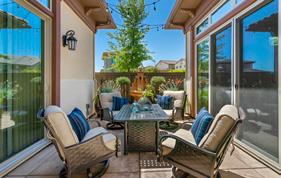 Custom Single Level Residence in Serrano CC guard gated community features guest quarters with separate entry, kitchenette with laundry hookups, full bath, bedroom & spacious sitting room. Upgrades in the spacious open design home include Sierra Pacific & transom windows, Thermador kitchen appliances, LED lighting, hardwood floors & oversized garage.