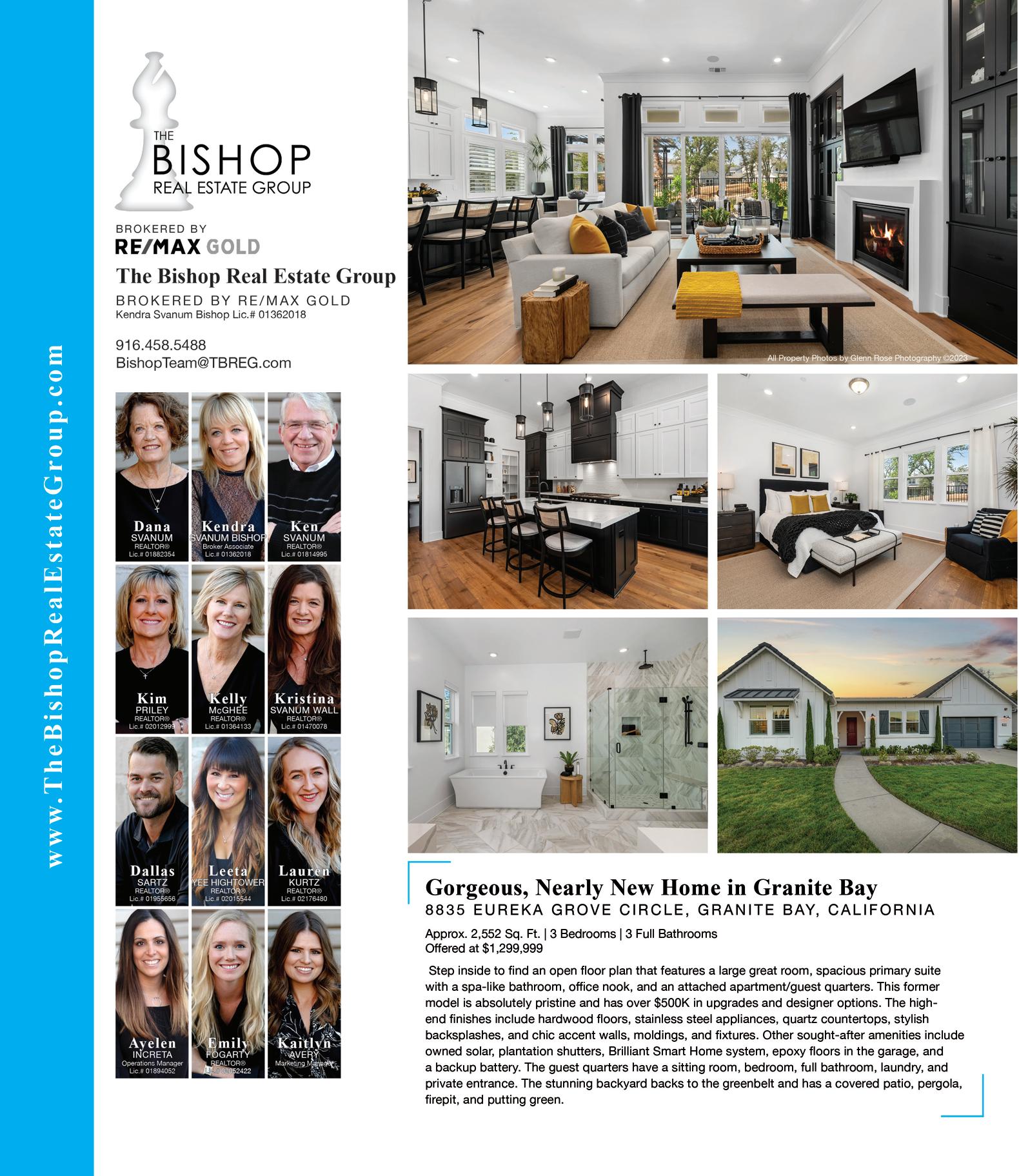 1975 CENACLE LANE | CARMICHAEL | $1,999,999 8120 BROOKHOLLOW COURT | LOOMIS | $3,950,000 | CO-LISTED WITH LYN ADAMS