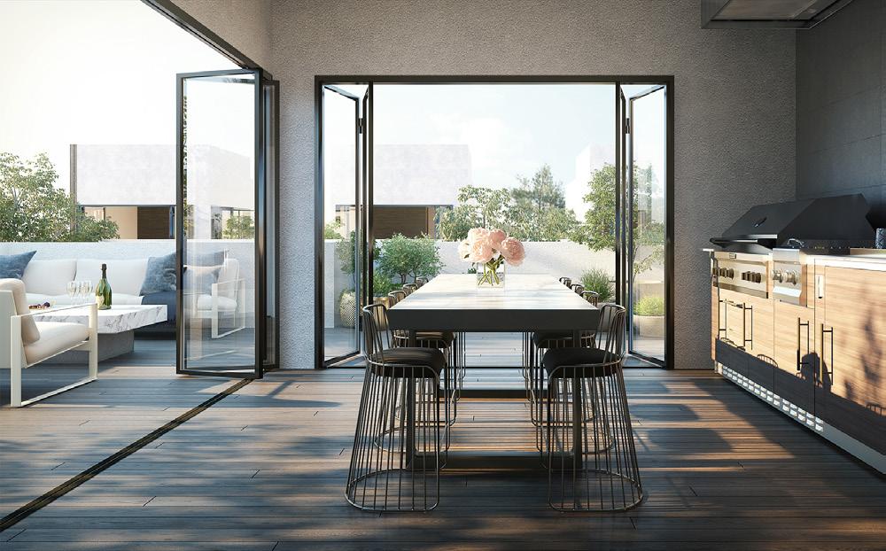 Welcome to this exquisite Scandinavian-inspired home with the utmost attention to detail. Be greeted by the courtyard, oversized steel glass front door, heightened ceilings, and a vaulted entryway. Indoors, the great room opens to the 30’ pocket doors.
