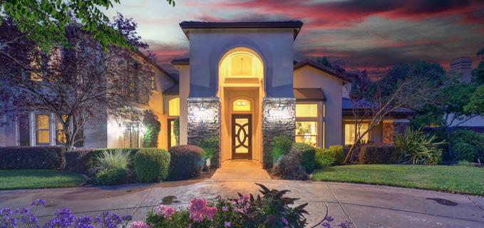 550 RODANTE WAY, SACRAMENTO | $2,500,000 | This stupendous residence is nestled on one of the most prestigious streets in the Sacramento Area. The 5 bedrooms, 4 full baths home was custom built to redefine Luxury Living at the finest. Featuring a massive solid wood front door, setting the tone for grandness, floor-to-ceiling windows throughout overlooking the swimming pool and spa, skylights, exposed beams ceiling, wood flooring, fireplaces, and the list goes on. Single-story, in a quiet cul-de-sac, surrounded by lush greenery, oversized rooms, this enchanting home checks all the boxes.