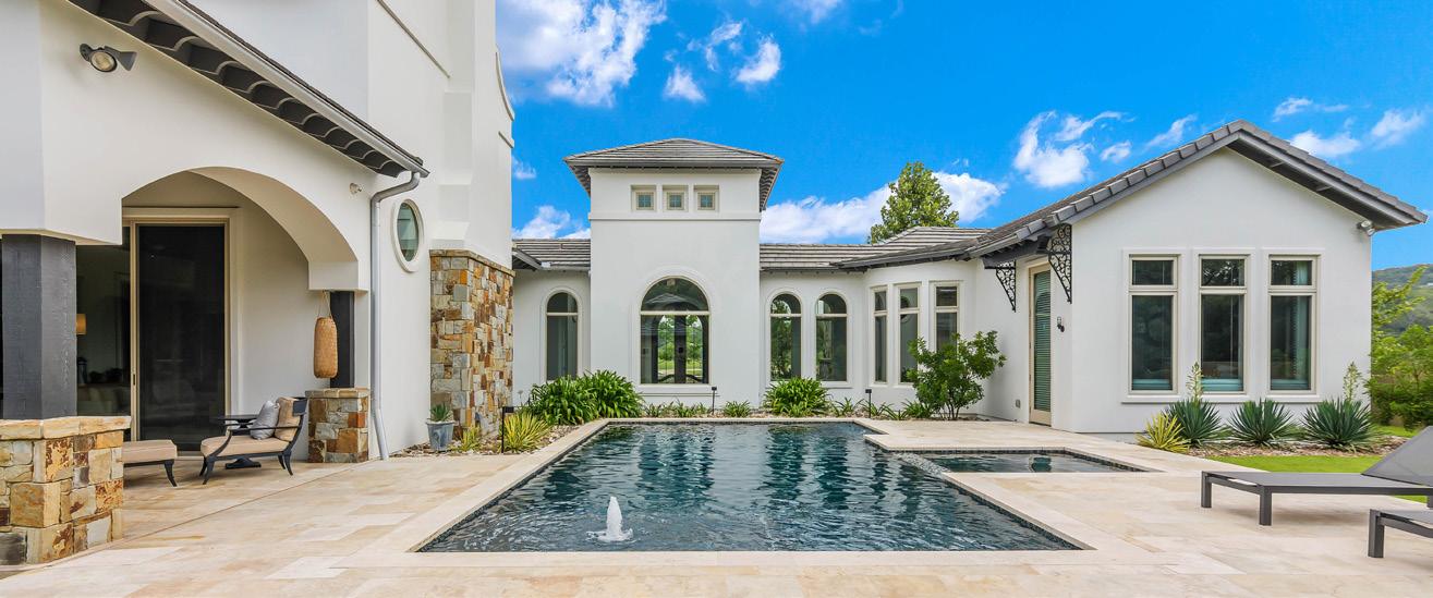 24 Park Mountain. stunning 4 bedroom, 4 bath Mediterranean-style villa on almost 3.5 acres. Indoor-outdoor entertaining is a dream with covered wrap-around porches, patios and balconies offering beautiful long range views – $1,699,500