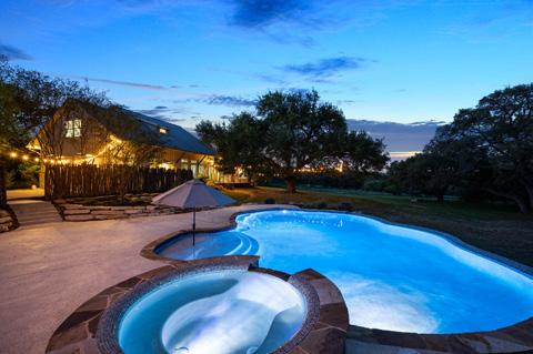 141 Woodland Ranch Road. Classic 5 bedroom, 4 bath Hill Country stone home with pool house/guest quarters on 13.96 tree-studded acres, gated, fenced and cross-fenced. Wraparound porch and spacious patios overlook pool, spa and gazebo — $2,195,000