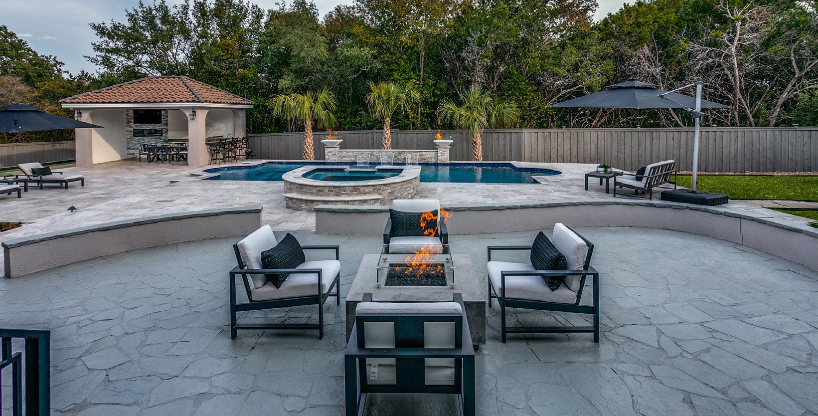 Outdoor grandeur is yours in which to revel with serene living spaces complete with a glistening pool, expansive covered patios and a glowing fireplace.