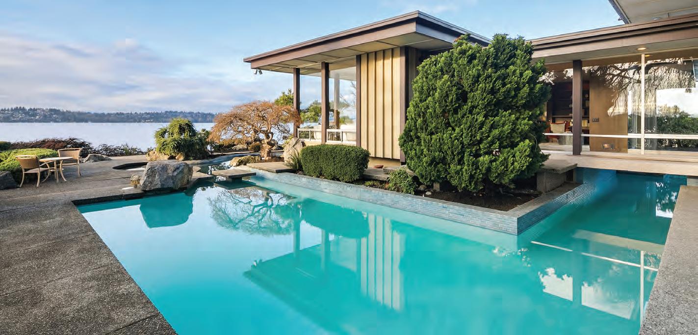 Designed By Architect Rick Chesmore With An Addition By Rick Sundberg | Main Floor Primary Suite With Elegant Dressing Room | Marble And Wide Plank Bleached Oak Hardwood Floors Baccarat Light Fixtures | Sherle Wagner Bath Fixtures Throughout | Heated Lap Pool | Manicured Boxwood Gardens Are Highlighted By Extensive Landscape Lighting And White Hydrangea Noted Designer Ted Tuttle’s Bespoke Interiors Were Carried Out To Perfection By Esteemed Contractor Shultz Miller | Renovation Completed In 2022 terryallen@cbbain.com | 425.417.6161 | TerryAllenLuxe.com EXCLUSIVE REPRESENTATION, MARKETING AND ACQUISITION OF LUXURY HOMES Live Beautifully waterfront | legacy estates | statement architecture LuxuryHomeMagazine.com | 7