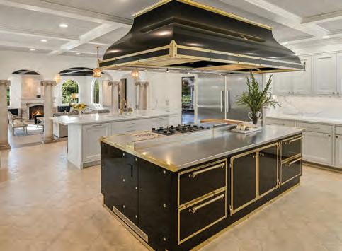 you home. The kitchen is an epicurean delight with up-to-date color schemes, refined finishes, Pedini cabinets, Gaggenau appliances, expansive slab waterfall island, all bathed