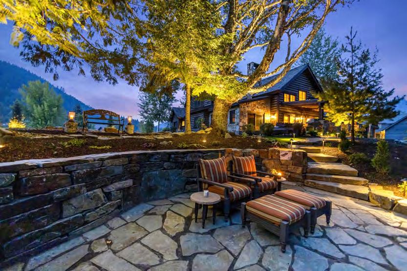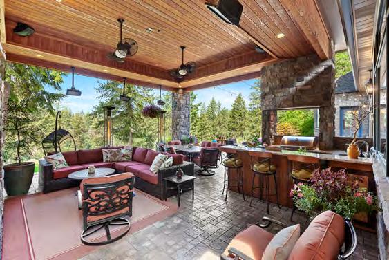 O ered at $1,999,900 | 356 N Idaho Club, Sandpoint, ID 83864 | Mountain splendor describes this lodge style home at The Idaho Club. The stone rough sawn wood ex terior mimics the mountain setting while luxuriously appointed interiors welcome you home. Vaulted ceilings form a canopy over the expansive great room w/ a oor to ceiling rock replace. Additional features include: a stunning kitchen w/ top-tier appliances, a spa-like master suite w/a replace, sauna, 2 redwood decks, a winding path to a woodland rock grotto, 3,462 sf, 5 bedrooms, 4 full baths, 2nd buildable parcel. MLS# 23-517