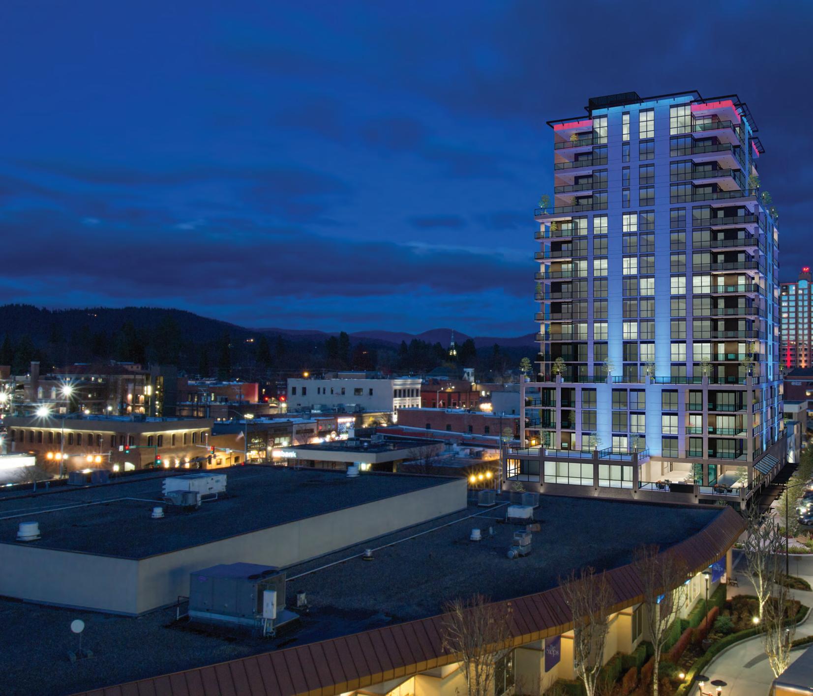 The Thomas George in North Idaho features 60 luxury condominiums, just steps from Lake Coeur d’Alene, downtown restaurants, spa treatments and shopping. Standing at 18 stories with construction underway, residences start under $800,000 and offer 1, 2 or 3 bedroom units Amenities include an indoor/ outdoor pool, private 2 car garages, a golf simulator, 24 hour gym, a concierge and a lakeview community terrace.
