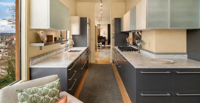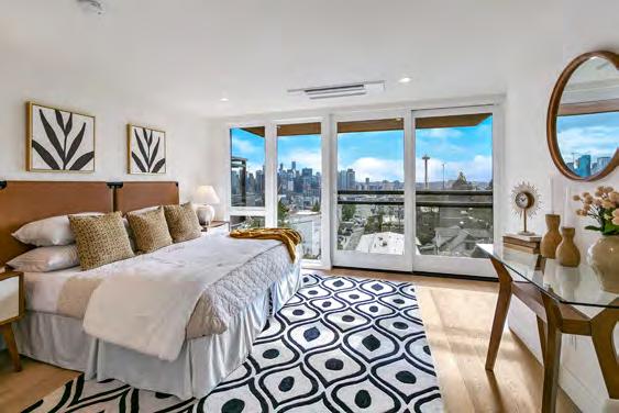 This exquisite urban dwelling, designed by renowned architect Jim Olson, showcases his distinctive style of elegant simplicity, sensitivity to site, and seamless integration of indoor and outdoor spaces. With a unique blend of location, west-facing views, and an enterta iner’s dream floor plan, the home is one that enhances the human experience. The great room, bathed in sunlight with its voluminous ceiling height, perfectly complements the breathtaking views, while an intimate family room just off the kitchen offers a cozy space for relaxa tion. The expansive primary suite, complete with a private office, is a luxurious retreat, and the generously proportioned second ensuite bedroom easily accommodates guests.