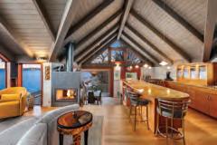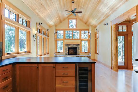 12 Nellas Place, Mazama, WA 98833 | New luxury cabin in the hear t of highly desirable Fosters Guest Ranch. With an abundance of open meadows, forests, access to the Methow River, plus a private lake/beach, Foster’s Guest Ranch is away from it all, yet right down the road from the Mazama Store. Perfectly situated at the base of Flagg Mountain, the cabin is wooded and sunny and features a delightful seasonal stream. Direct trail access from the backyard provides an unmatched ski-in, ski-out experience. The community is surrounded by National Forest land and per fect for biking, hiking and year-round outdoor adventure. The cabin was built with artisan touches throughout , including abundant use of natural stone and solid wood beams. O ered at $2,400,000