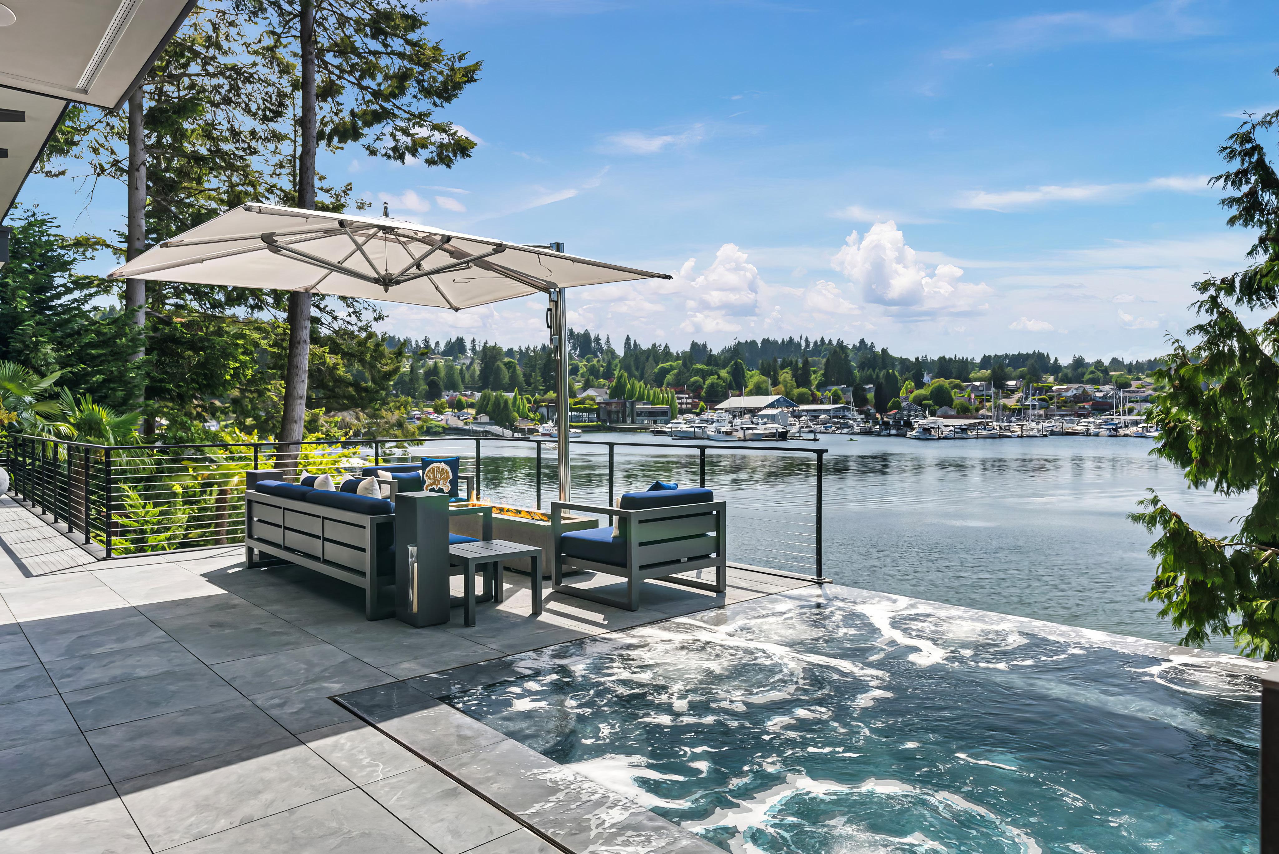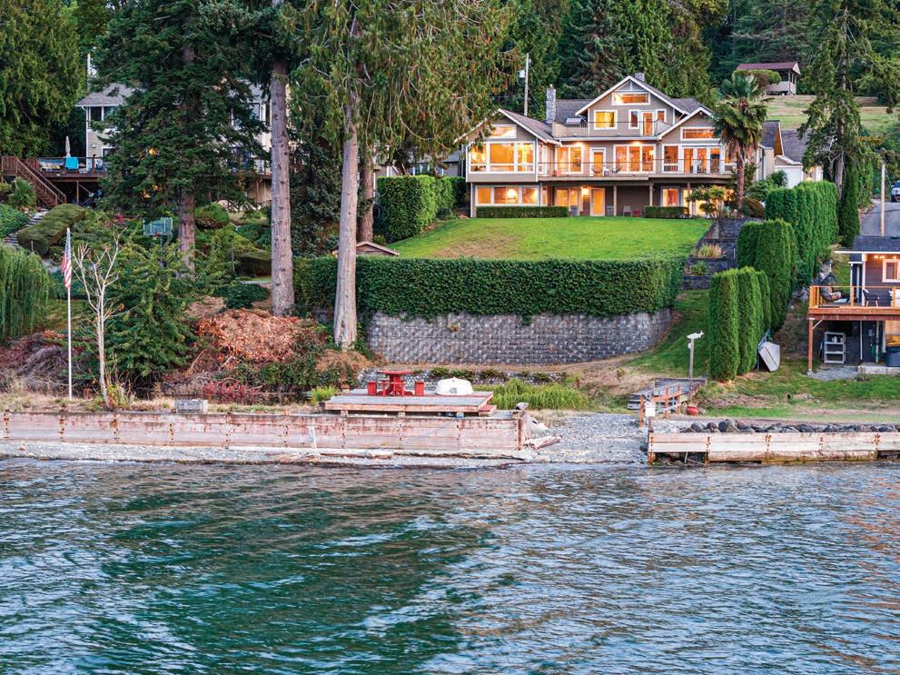Discover the perfect blend of luxury and nature in this remodeled estate nestled on 180 feet of waterfront. The awe-inspiring sight of soaring eagles, playful harbor seals and leaping salmon are a testament to nature. The outdoor areas are resort-like, with 3 tranquil running water brooks and covered patio areas for al fresco dining. Paved stairs lead to the water’s edge, and as the sun sets, gather around the fire pit perched above the inlet. Embrace outdoor living in a setting that celebrates the beauty of the outdoors.