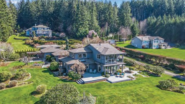 Offered at $1,997,000 | 2325 Cays Road, Sequim, WA | Indulge in estate living at its finest! This sprawling residence boasts breathtaking San Juan views and exquisite garden beds, orchard and greenhouse. Pe rfect fo r multigenerational living, offering private entrances, kitchens, & ensuites. Enjoy mesmerizing water views from eve ry room, complemented by warm wood interiors and a stunning river rock fireplace. The primary suite features a spacious ensuite and closet, along with ca ptivating water vistas. Two guest rooms with private baths and San Juan views offer luxury and comfor t. The chef’s kitchen is a culinary delight with bar seating and a five-star 6-burner stove Additionally, a 2-stall barn is per fect for horses or hobby farming. Conveniently located minutes from shopping, restaurants, and highway.