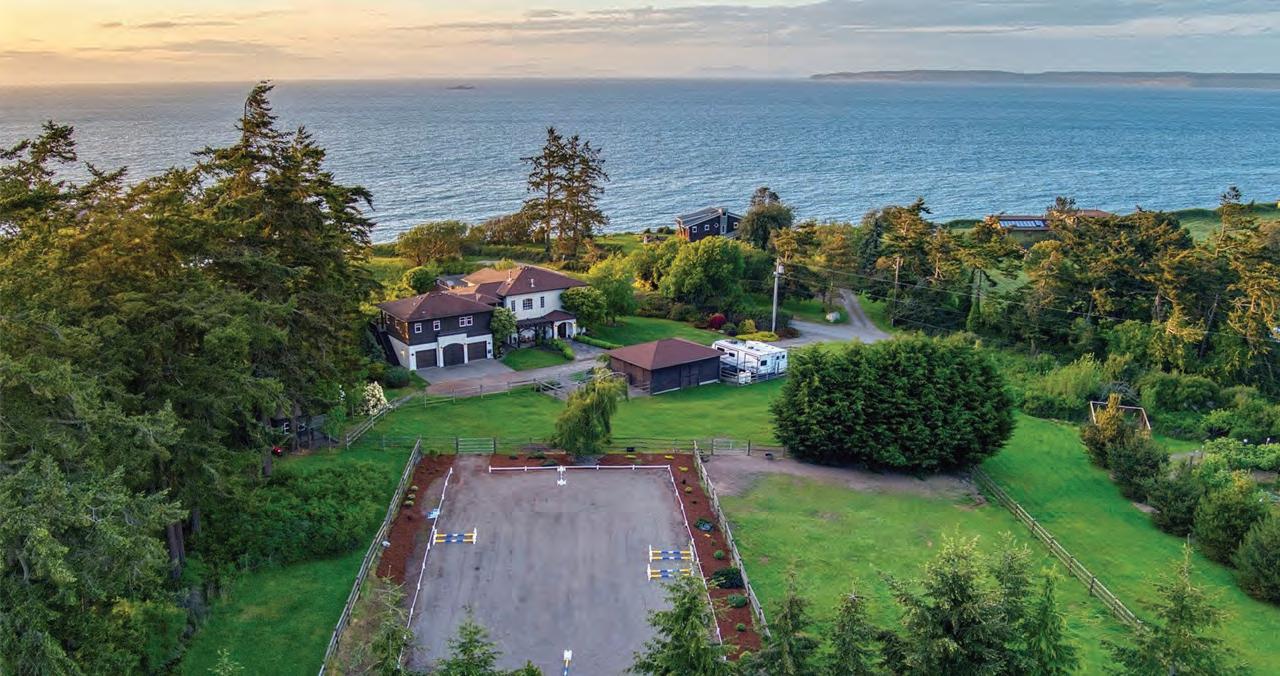 5417 Island View Way, Bow, 98232 | Offered at $6,495,000 | This custom-built NW Contemporary home is a stunning composition of stone, wood & glass all boldly proportioned & oriented to capture breathtaking bay & island views. Peace and privacy are yours with this 5-acre estate in sought-after Bow. Entertain effortlessly with the grand 2-story great room, custom bar, chef ’s kitchen, & dining room with seating for 16. Outdoor spaces include a covered BBQ kitchen & fireplaces facing the view. High-end finishes including Sub-Zero & Wolf appliances, marble, quartz, & rare wood built-ins. This 4-bed home includes a stunning primary suite with the ultimate spa bath & walk-in closet. Luxurious amenities include a 1500 bottle capacity wine cellar, 10-seat Dolby Atmos movie room, executive office, & huge shop/ exotic car garage/ ADU. High Speed Internet. Centrally located, 1 hour from Seattle & Vancouver, Canada, 15 minutes to Bellingham and 10 minutes from the Skagit/ Bayview Regional airport” MLS# 2196262