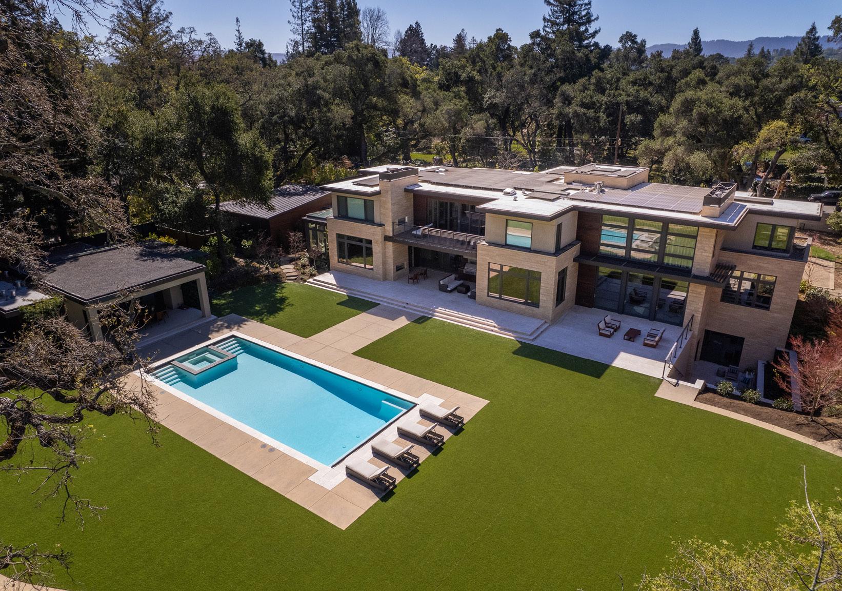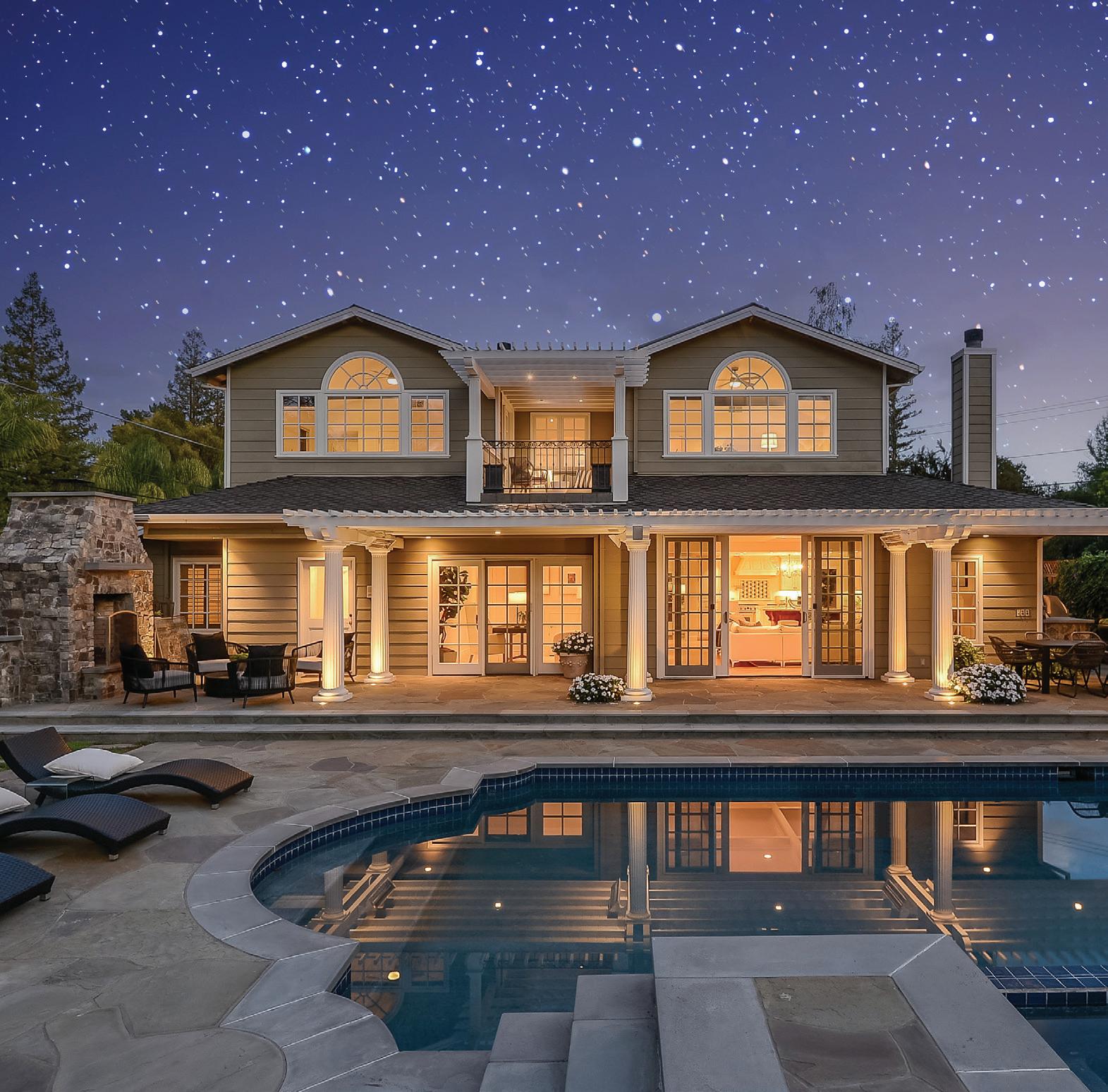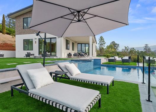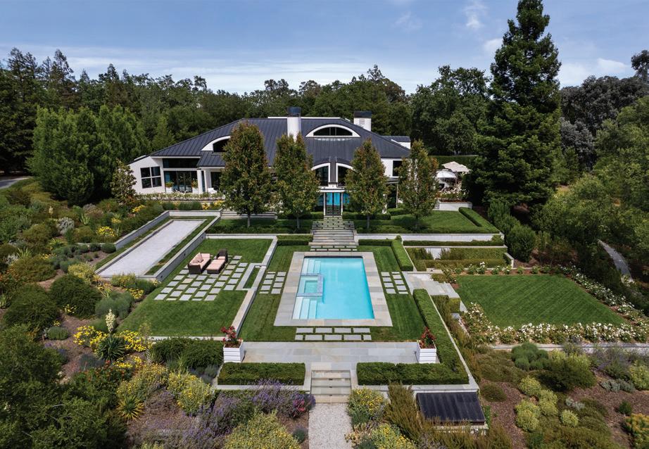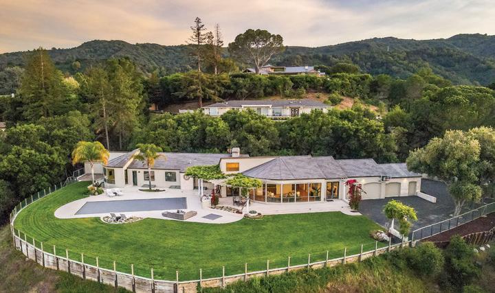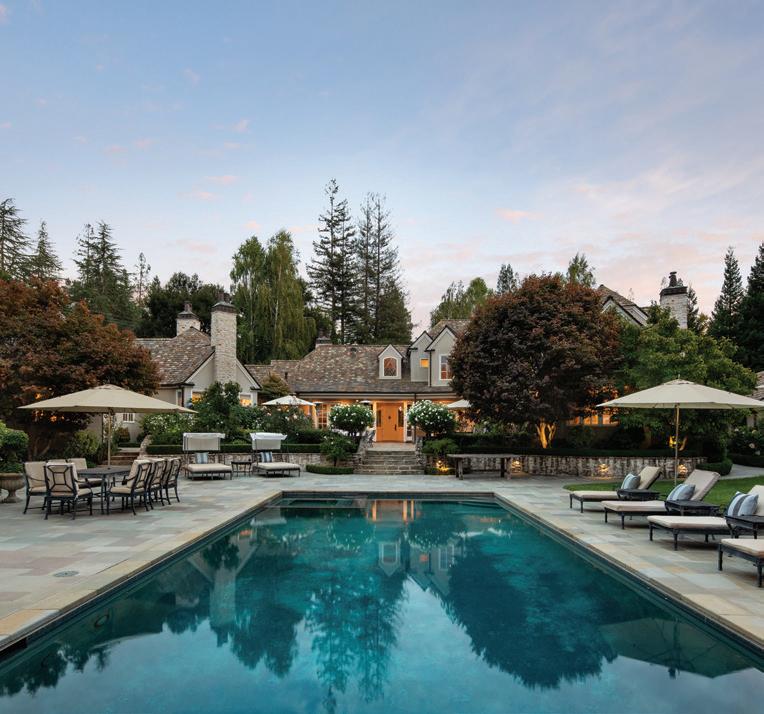 enhance the ambiance of this magnificent estate. Views of rolling hills and lush gardens from multiple ensuite bedrooms that feature walk-in closets, jetted tubs, LED mirrors and bidet toilets. The backyard is an oasis for entertaining and relaxation; from the spectacular heated infinity pool and spa overlooking the hills, to an expansive lush artificial lawn. 1,200 sq ft attached 2 bed/2 bath ADU, 30-panel solar system, 3 EV charging ports, access to The Fremont Hills Country Club and acclaimed Palo Alto Schools. This magnificent compound provides endless luxury! LOS ALTOS HILLS | $14,000,000