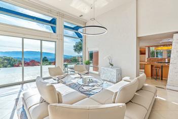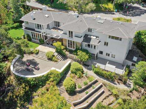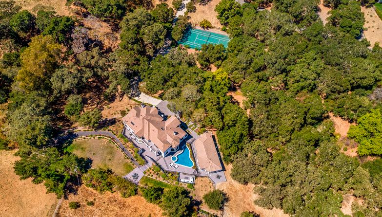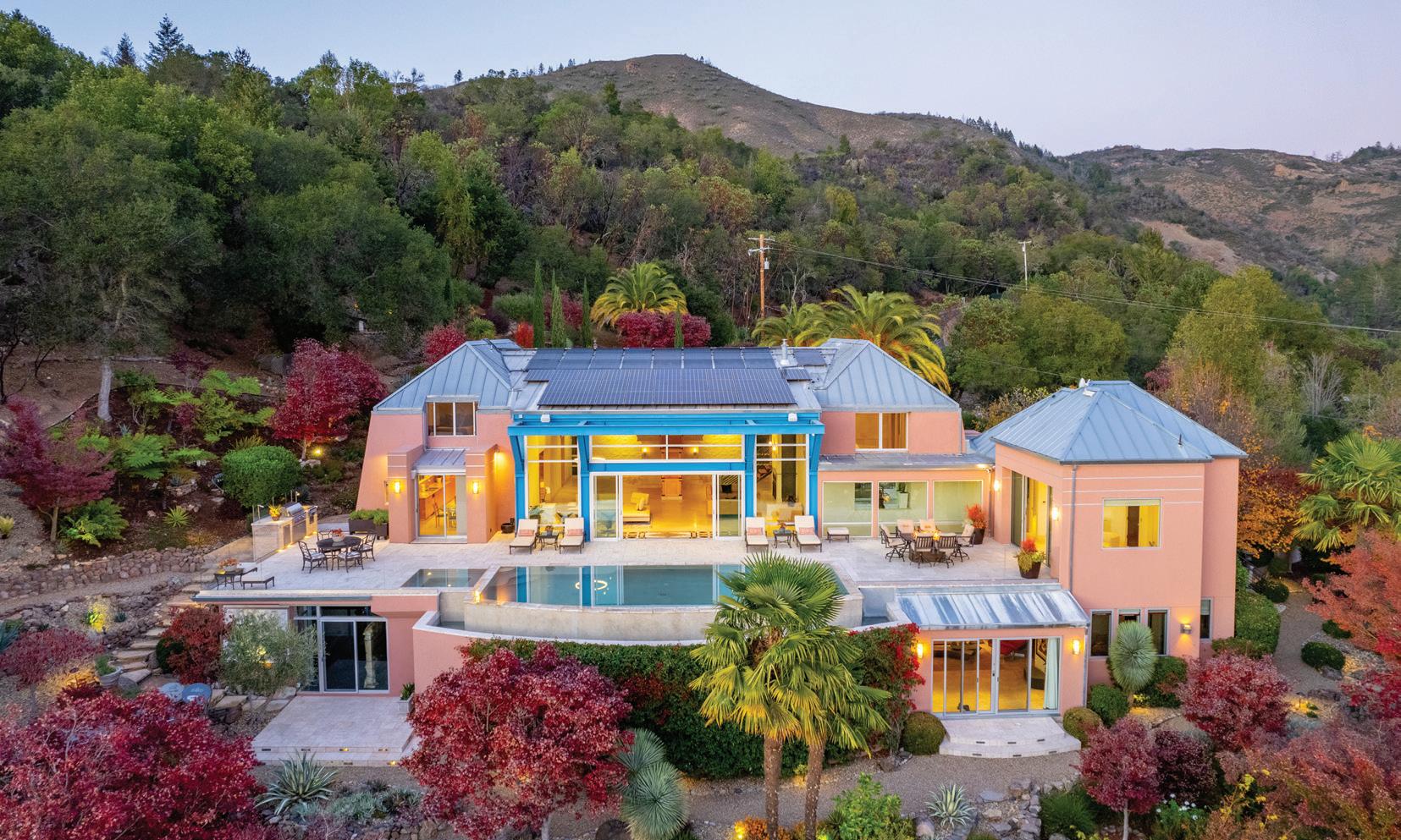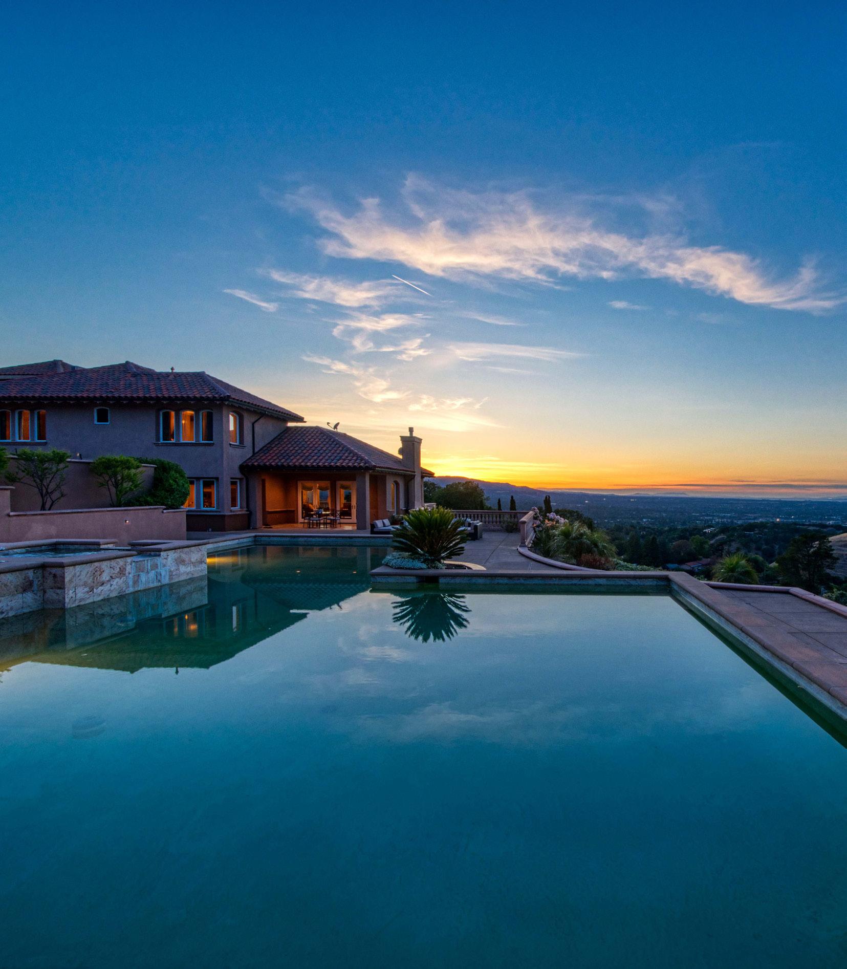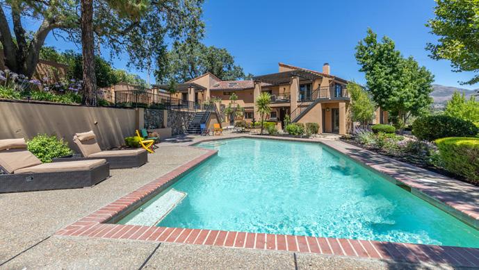 enhance the ambiance of this magnificent estate. Views of rolling hills and lush gardens from multiple ensuite bedrooms that feature walk-in closets, jetted tubs, LED mirrors and bidet toilets. The backyard is an oasis for entertaining and relaxation; from the spectacular heated infinity pool and spa overlooking the hills, to an expansive lush artificial lawn. 1,200 sq ft attached 2 bed/2 bath ADU, 30-panel solar system, 3 EV charging ports, access to The Fremont Hills Country Club and acclaimed Palo Alto Schools. This magnificent compound provides endless luxury! LOS ALTOS HILLS | $14,000,000