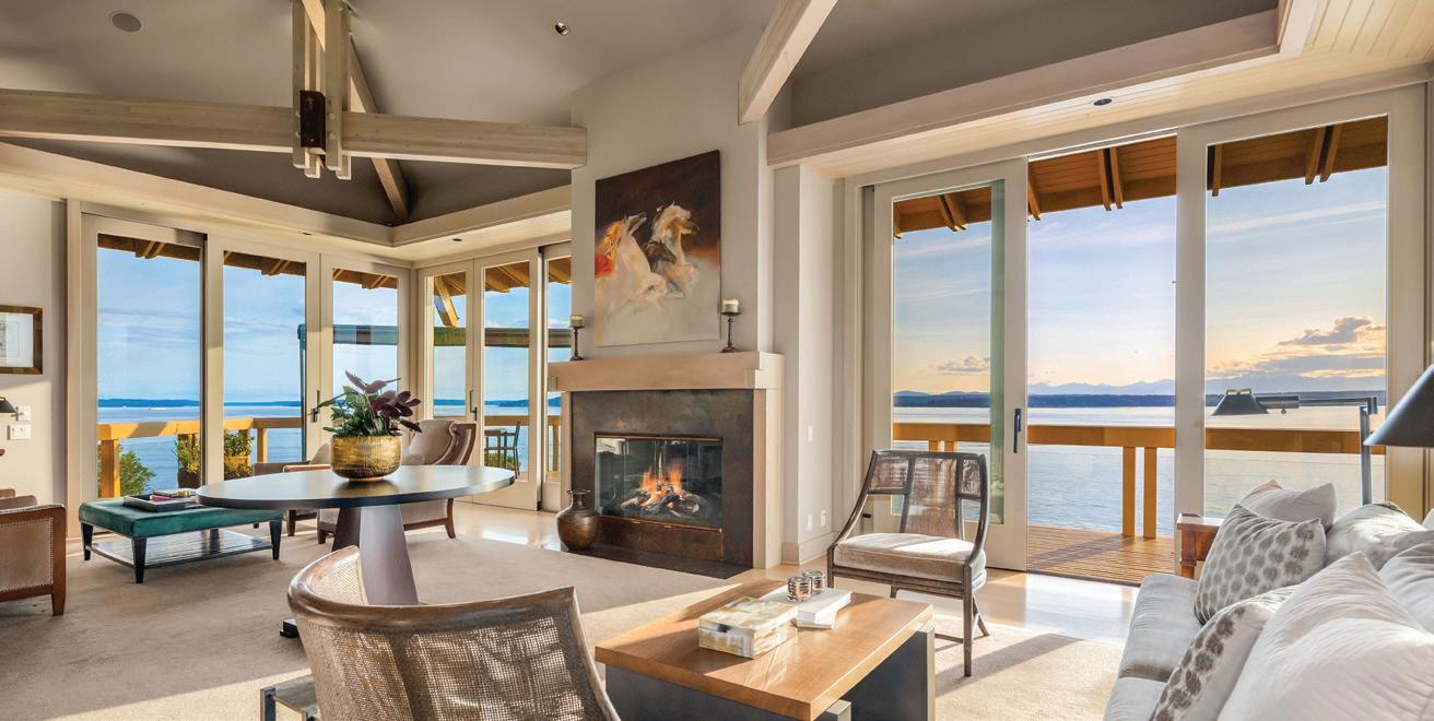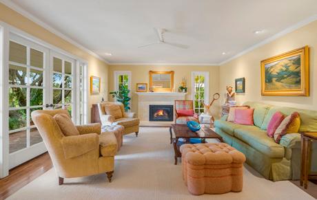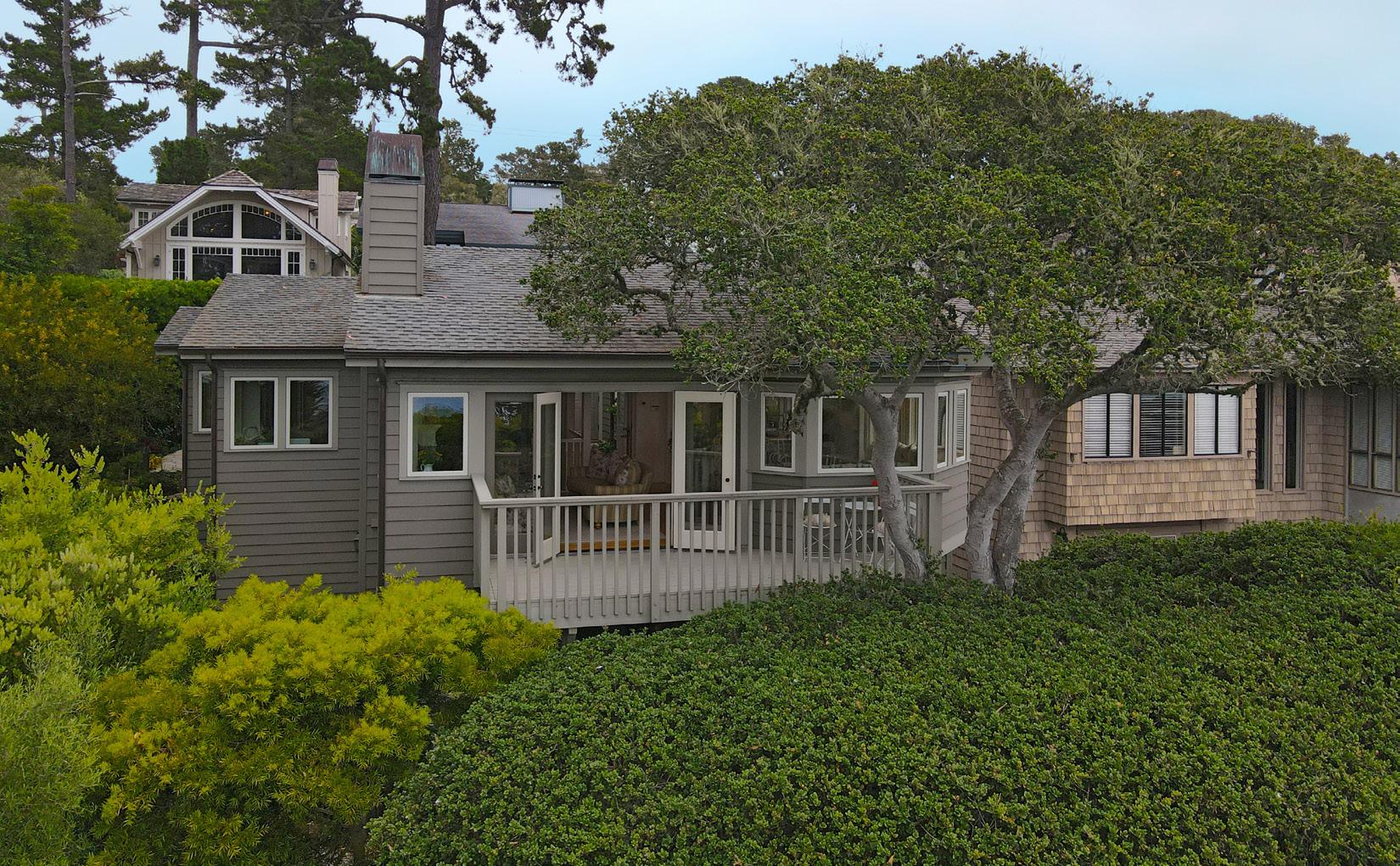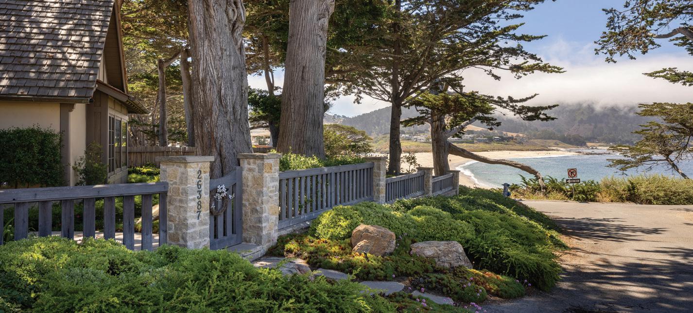 this post-card perfect Carmel Point home exudes warmth and harkens back to more gracious times. The grand living room has soaring beamed ceilings, a large fireplace and expansive views of Point