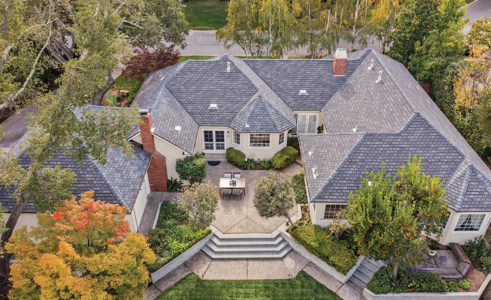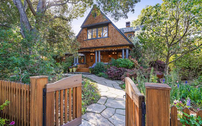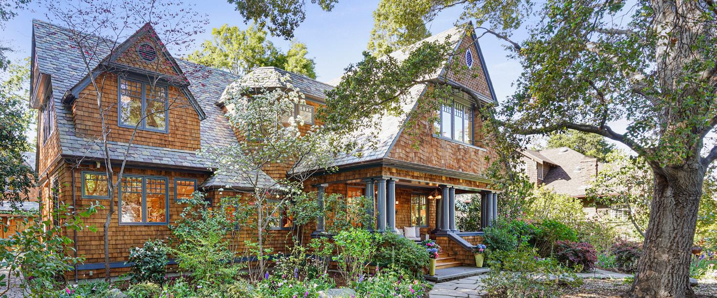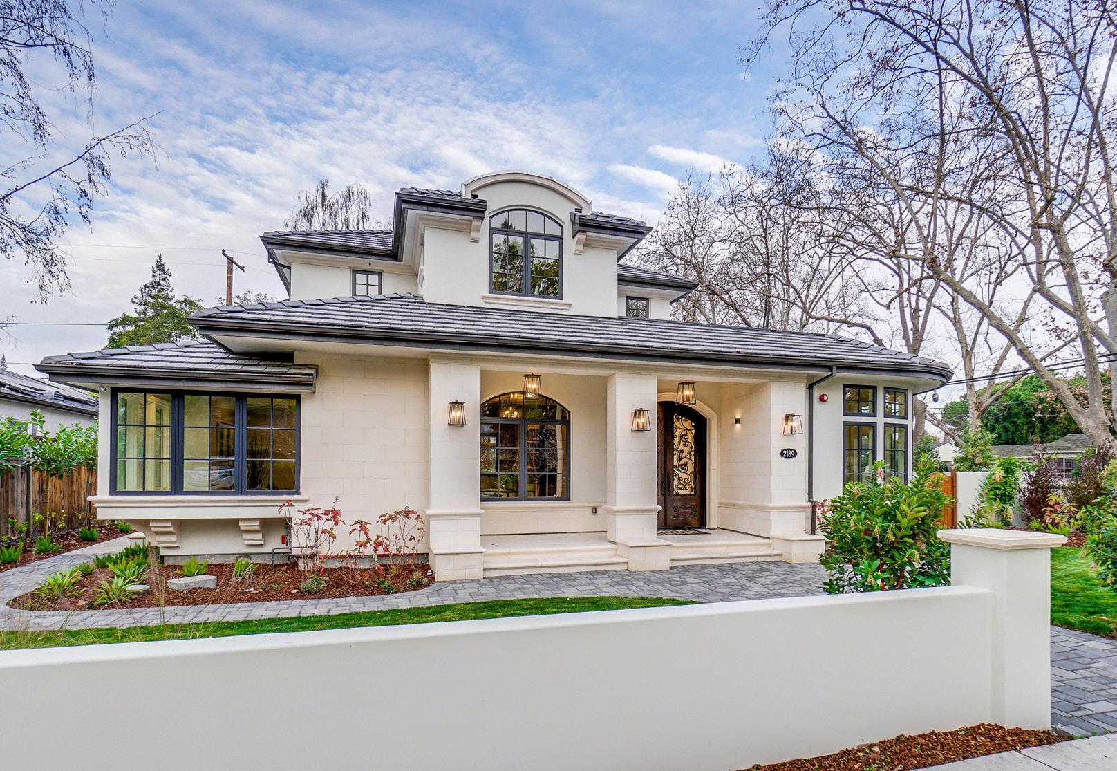among oak tree canopies, this is a rare opportunity to own a newer home on a lot of over 15,000 square feet just blocks away from vibrant downtown Palo Alto. From the wavy shingled front façade and gingerbread design, to the extra large covered front porch and 100-year slate roof in a Necco wafer pattern, the home is a clear representation of this transitional style between Victorian and Craftsman. Even the reclaimed San Francisco cobblestone with grass median strip recalls the earlier era along with English roses, Set on a rarely found lot of over 15,000 square feet, with gated entry, the surroundings offer ample