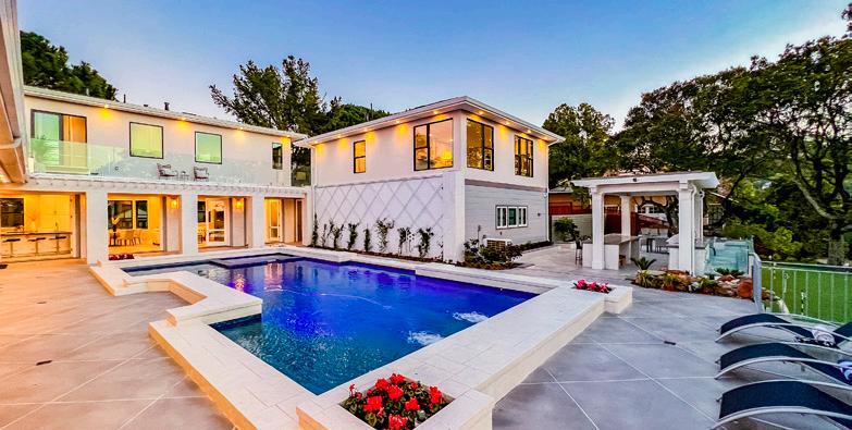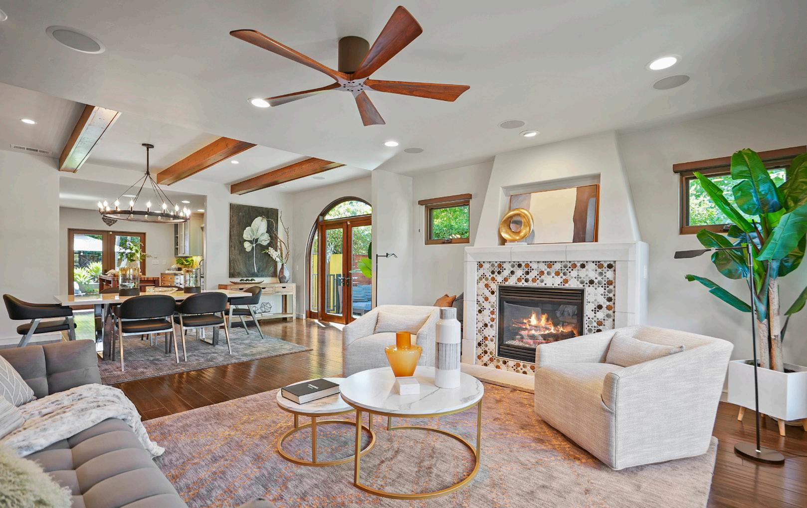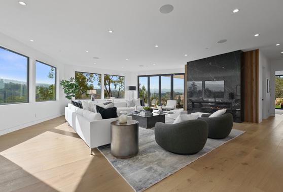 NEWLY BUILT, ULTRA-MODERN HOME that perfectly balances opulence, style, and tech. Bright and open with panoramic views. Unparalleled attention to detail! Primary residence offers 4 bedrooms, office and 4.5 baths. Generous living and dining area overlooks a resort-style backyard through floor-toceiling glass. Gourmet kitchen features Miele stainless-steel appliances, epic island, porcelain slab countertops, Grohe faucets with water filtration and European cabinetry. 72” gas fireplace, custom walk-in wine cellar, 12” European engineered floors, Sonos audio system and soundproof insulation