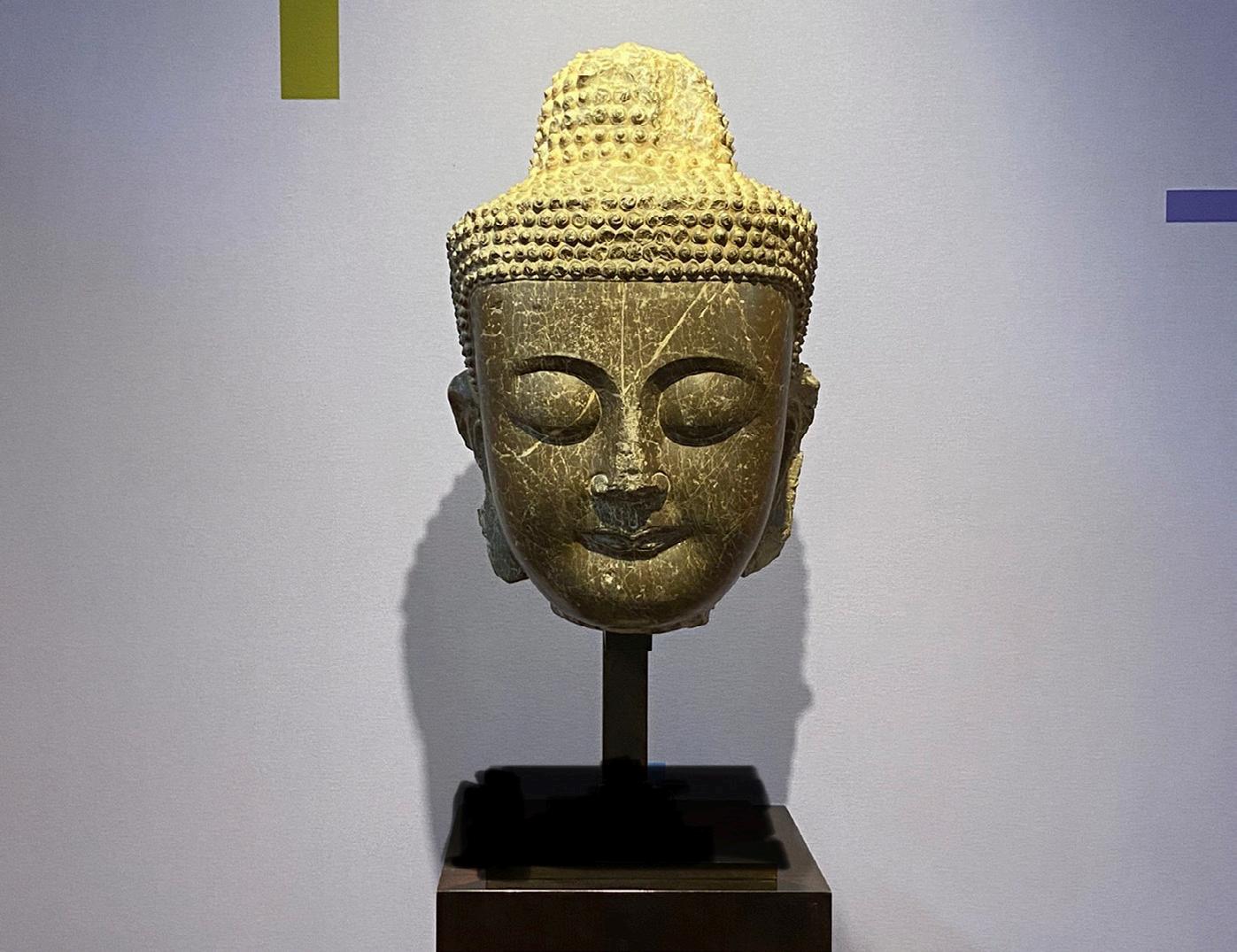 From Burma, a rare 5th Century Burmese Temple Colossus of Siddhartha Gautama Buddha, executed in solid granite and presented on a bronze and mahogany pedestal.