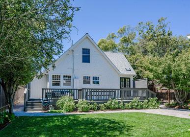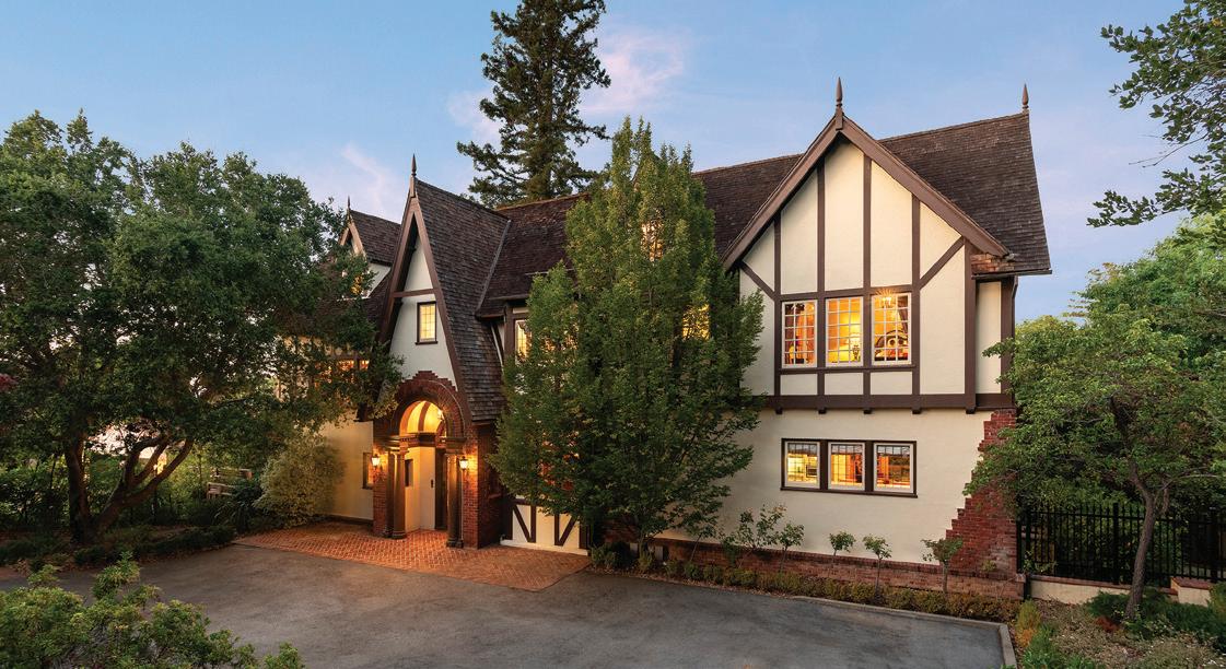 Gorgeous 2016 Tudor-style home with open-concept floor plan on a tree-lined street in coveted Crescent Park. Light and bright transitional interior design blends modern style with traditional charm and character for a chic and warm feel throughout. The heart of the home is a tremendous great room with a stunning wall of divided-light accordion doors that provides a seamless transition to the spacious and heated loggia ideal for entertaining and relaxing. A luxurious open gourmet kitchen with oversized island and top stainless steel appliances, a sunny breakfast nook with French doors to a private patio for al fresco dining, a formal dining room, a living room with gas fireplace, and a bedroom with en suite bath and double doors to the rear yard complete the first floor. A generous primary suite with tall soffited ceilings, a spacious walk-in closet, a lavish bathroom, and a private balcony highlights the second floor, plus two additional elegant bedrooms, a beautiful shared bathroom, and a laundry room. Additional features: handsome hardwood oak floors, skylights, remote-controlled drapery, A/C, dual pane windows, and fresh interior paint. Wonderful lush and mature landscaping, a detached one-car garage with built-ins and great potential for flex use, and just minutes from the vibrant downtown, parks, museums, Stanford University, and outstanding public schools (Duveneck Elementary, Greene Middle, and Palo Alto High).