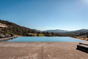 The latest, stunning property offering under the collaboration of Alfa Partners, Sonoma Hill Builders & Bevan & Associates. This gated, single level, Modern California style home is built to the highest standards. Located on nearly 12 acres in Foothill Ranch, equidistant to Healdsburg & Calistoga & just minutes to the Sonoma County Airport. The contemporary design encompasses a main home and pool house/ guest unit at approx. 5600 square feet, which includes 4 en-suite bedrooms, media room, 1200 square foot great room, plus the pool house with a full bath, laundry, kitchenette & gym. The chef’s kitchen includes two islands, top tier appliances, built-in wine storage & a separate butler’s kitchen area. Arrive in the parking court and ascend into the private front courtyard which is also gated & showcases an infinity edge fountain. Resort style amenities include 2000 square feet of heated, covered outdoor living space with a pool & spa, bocce court, fire pit seating area & an outdoor kitchen. Take in the incredible views while overlooking the custom infinity edge pool. Foothill Ranch is an exceptional community of estate properties with private hiking/riding trails & a private lake.